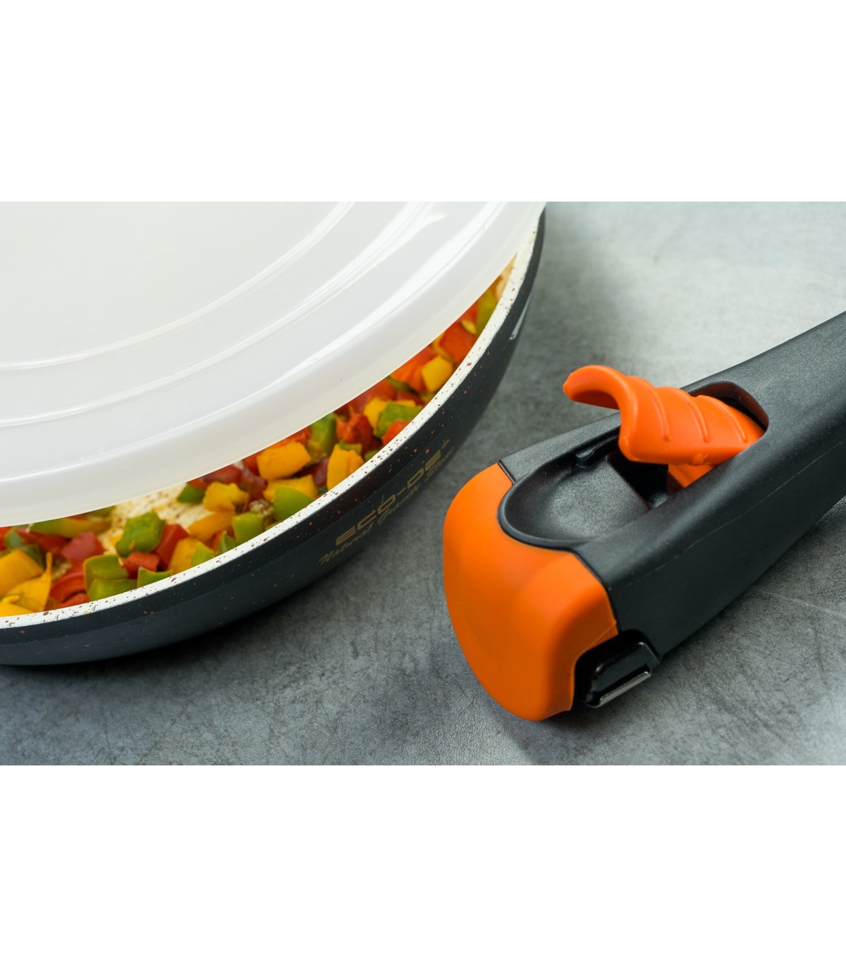 - Die "Granite Stone" ECO-DE Bratpfannen werden mit 2 Polyethylendeckeln zur Aufbewahrung geliefert. Dank des abnehmbaren Griffs können Sie die Pfannen außerdem leicht in Ihrer Küche verstauen.