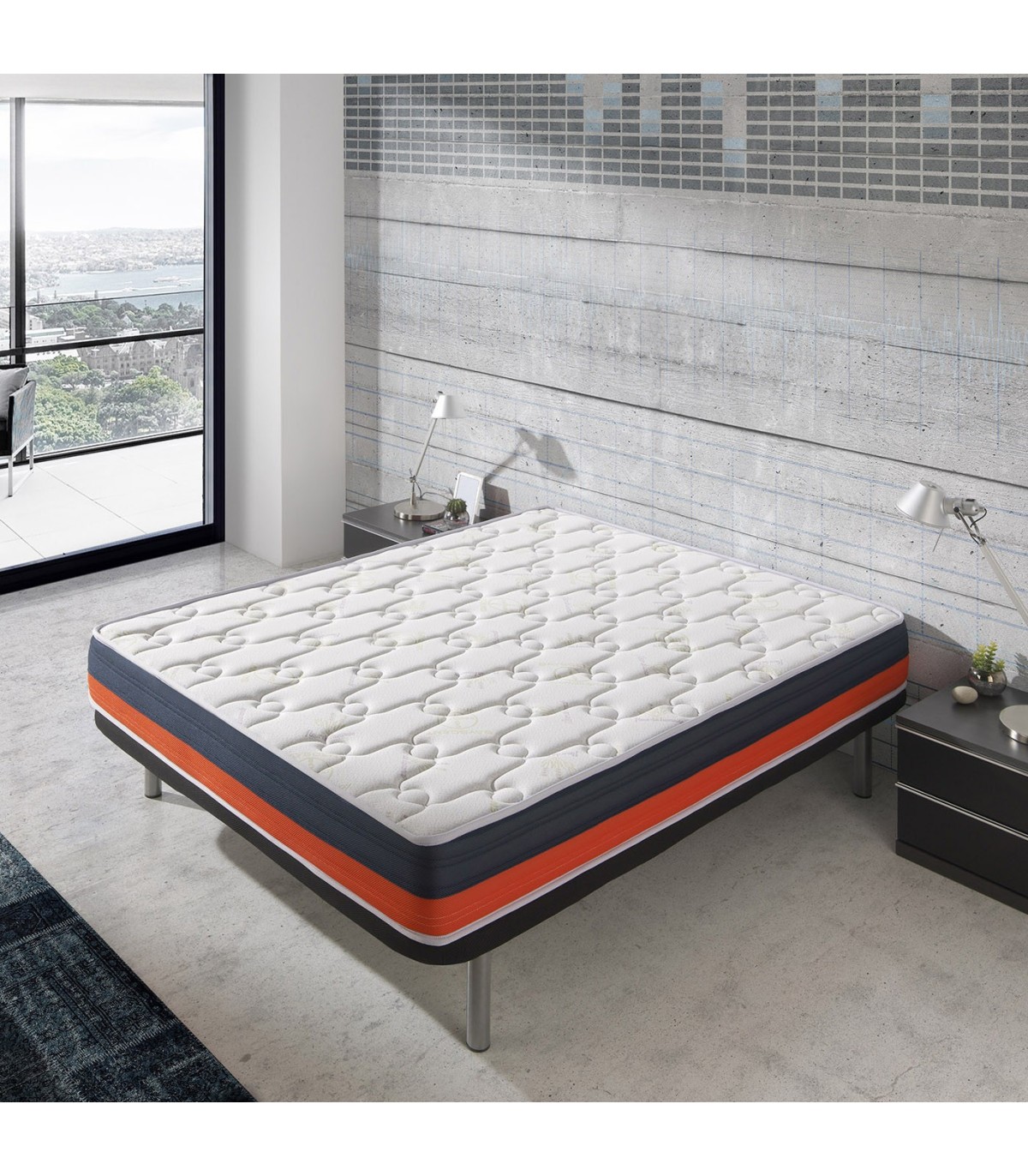 - COLCHÓN ALTA GAMA: El colchón combina material viscoelástico y tejido 3D, mantieniendo la correcta alineación de la columna y del cuerpo durante el descanso, disminuyendo los puntos de presión.