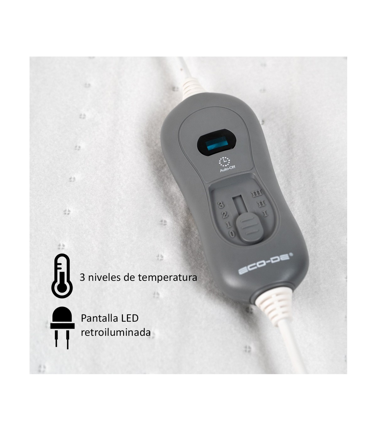 - ECO-DE Safety System: Apagado automático contra el sobrecalentamiento. Protege al usuario para que utilice el calientacamas de forma segura en cualquier momento apagándose a los 180 minutos de uso tanto la emisión de calor como la luz.