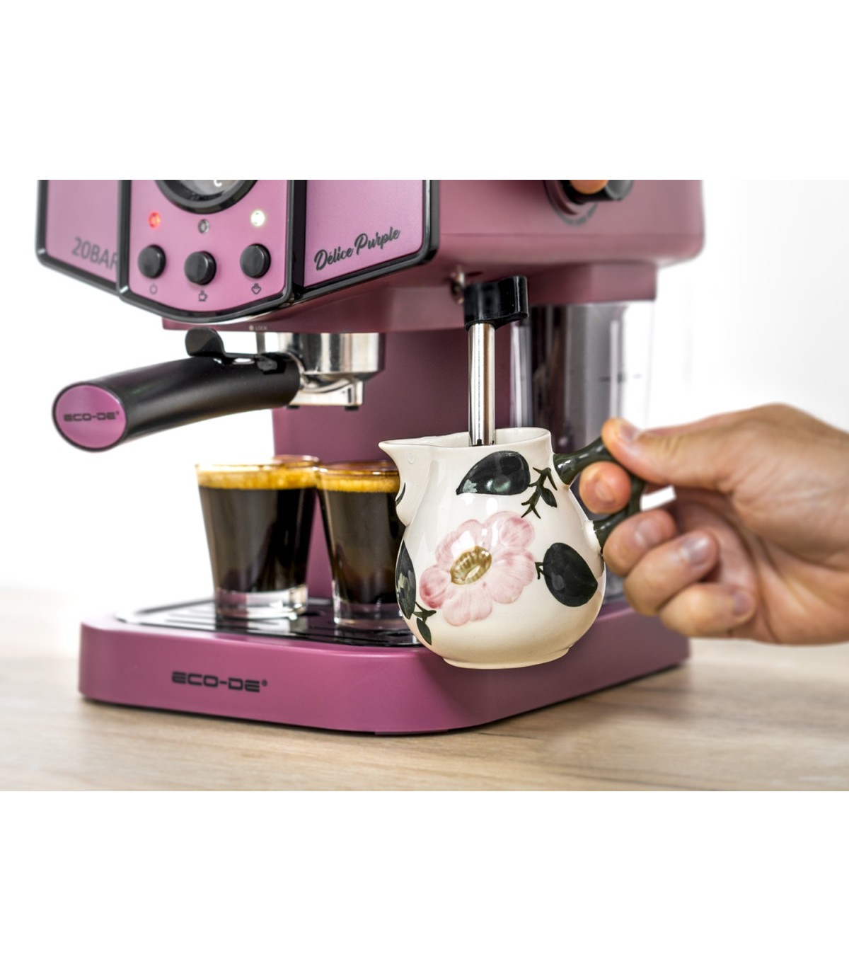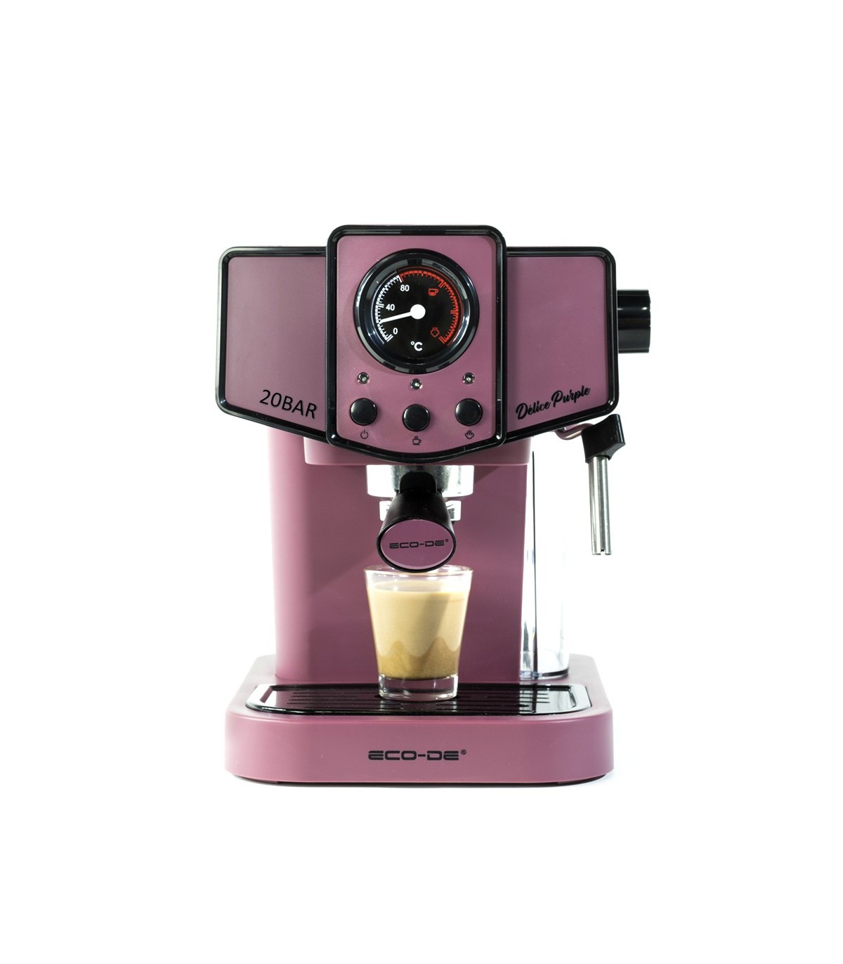 ECODE® DELICE PURPLE Espressomaschine, 20 Bar Druck, Dampfdüse, 1,5 Liter Wassertank, Manometer mit Temperaturanzeige