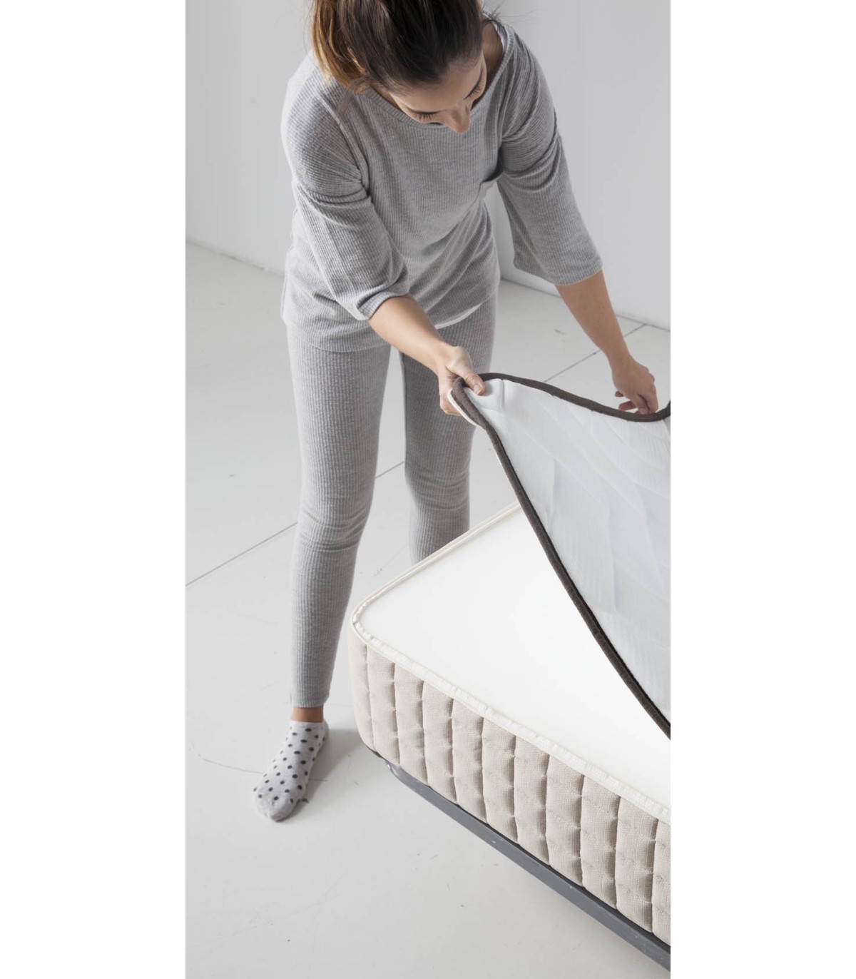 - EDisipa la concentración de puntos de calor en las zonas de contacto manteniendo una temperatura uniforme. Maximiza la transpirabilidad, evacúa la humedad evitando sudoraciones y olores ayudando al descanso prolongado y sin interrupciones. * Efecto viscoelástico 1 cm.