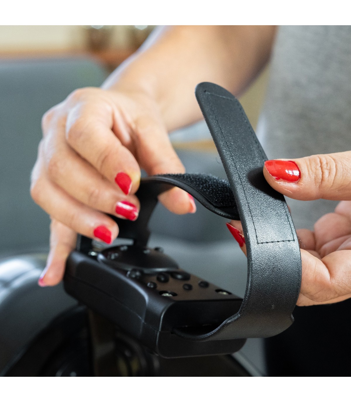 - Eine Fernbedienung ist in den Hauptkörper integriert, um die Verwendung je nach Übung zu erleichtern. Abnehmbar für Übungen, die eine Programmierung erfordern, ohne sich bücken zu müssen.