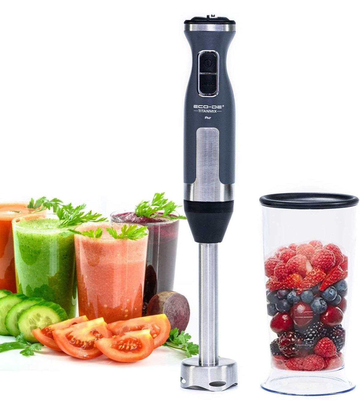 Con la Batidora de mano Titanmix Pro ECO-DE® las tareas como mezclar o batir se realizan en menor tiempo y se consiguen resultados excelentes incluso al triturar alimentos duros. Este diseño permite obtener velocidades de hasta 16.000 Rpm.
