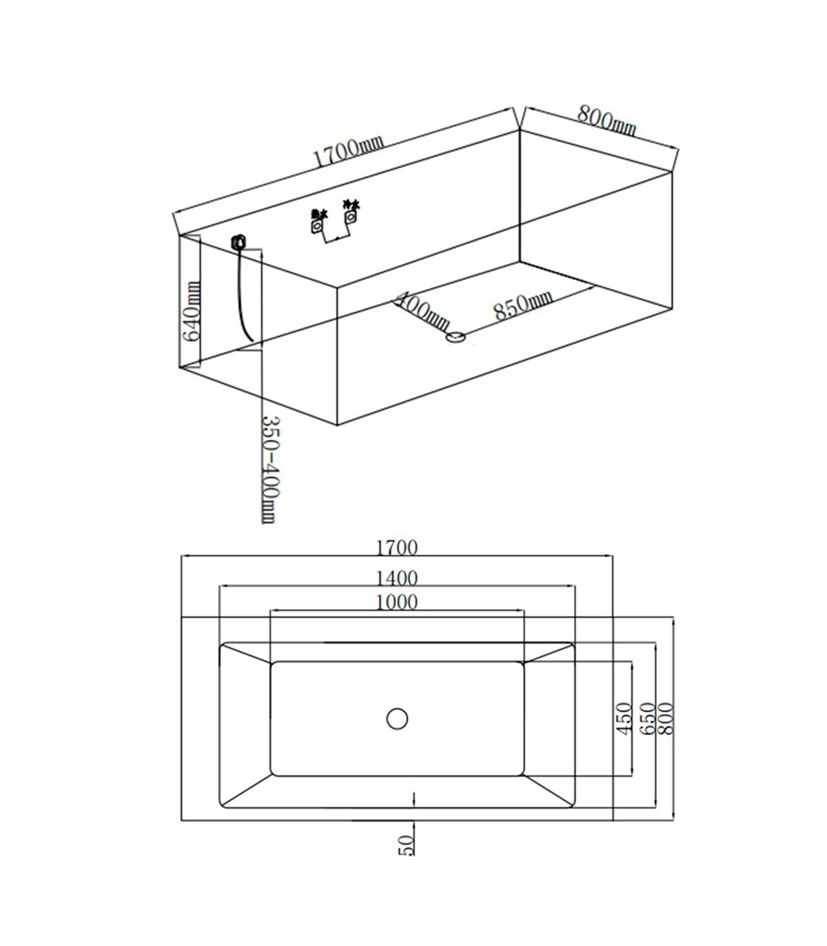 ECODE® Whirlwanne "DENIA BLACK" 170x81x64cm