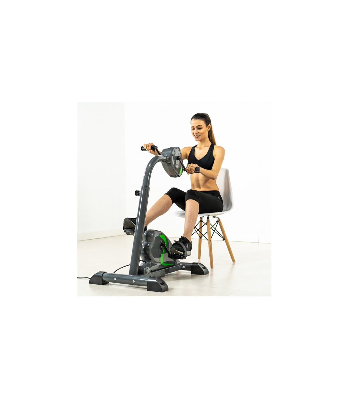 La bicicleta eléctrica “DUAL TRAINING” de ECO-DE® es una práctica opción para ejercitar fácilmente los músculos tanto de las piernas como de los brazos. Un aparato de gimnasia ideal para ejercitar piernas y brazos para gente mayor.