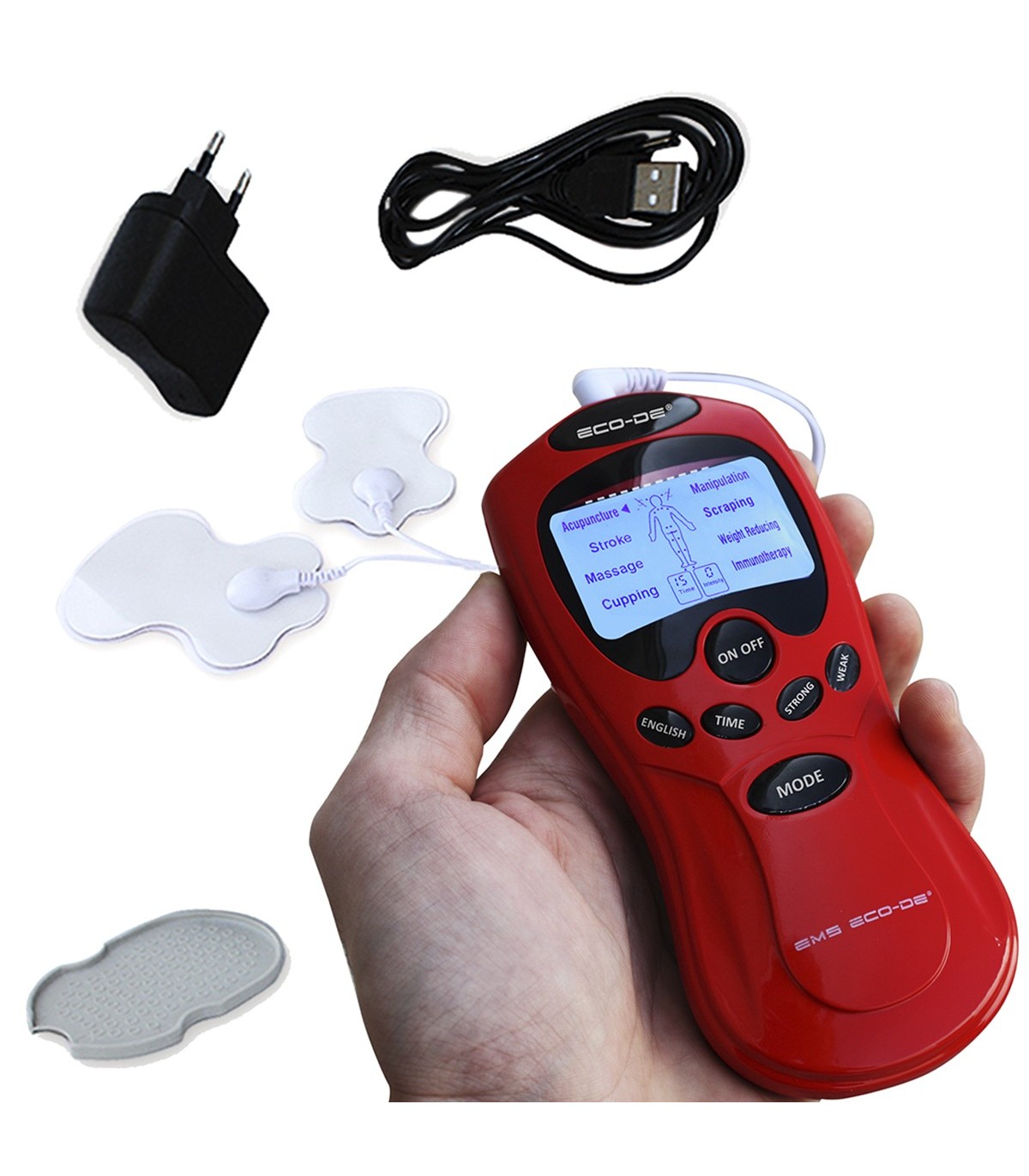 It has 8 programs with 15 intensity levels, LCD and independent channel controls. Powered by 3 AAA batteries. Batteries not included. Inlus 2 patches. Once put into service, the device transmits electrical pulses to stimulate muscle contractions in a similar way as in the case of pulses emitted by the brain. It becomes difficult for the muscles to differentiate between the impulses transmitted by the electrode or the brain. The EMS stimulator will help you get the desired physical shape, as well as recover you from injuries. Product measurements: 15x7x1.8 cm - Power: 180mW