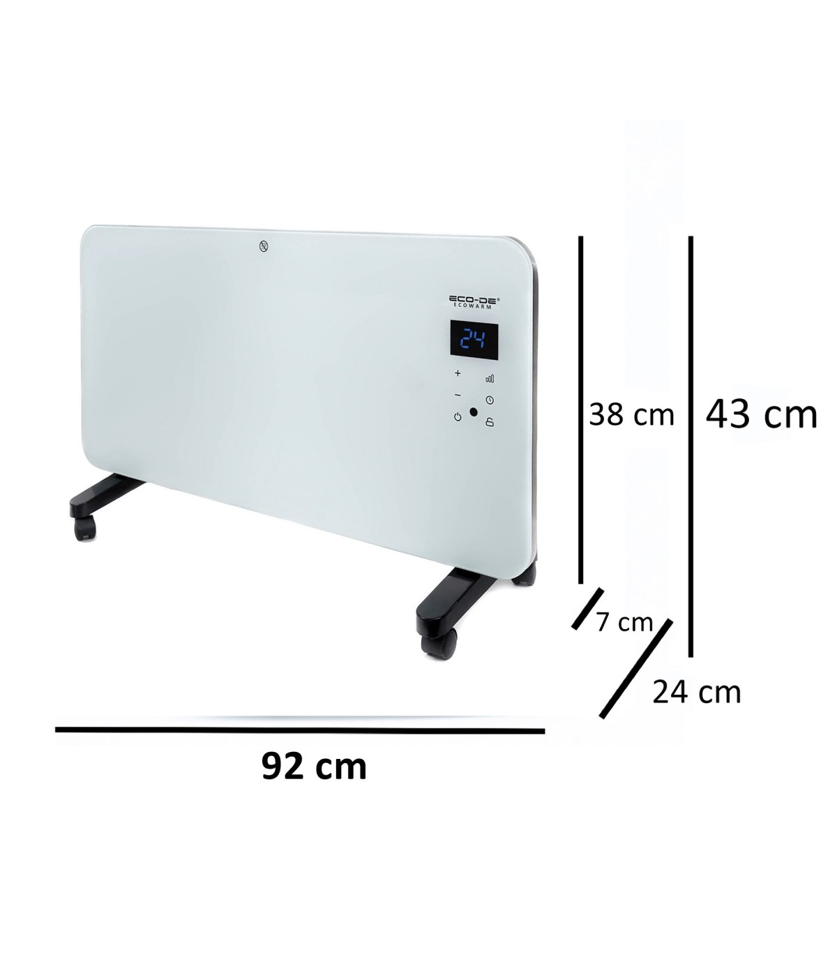 ECODE® EcoWarm Low Consumption Convector Radiator, Portable Wheels Wall or Floor, Electric Stove from 500 to 2000W, Silent Electric Radiators, Timer, Touch Control, Mobile APP Control, Wifi Thermostat IP24