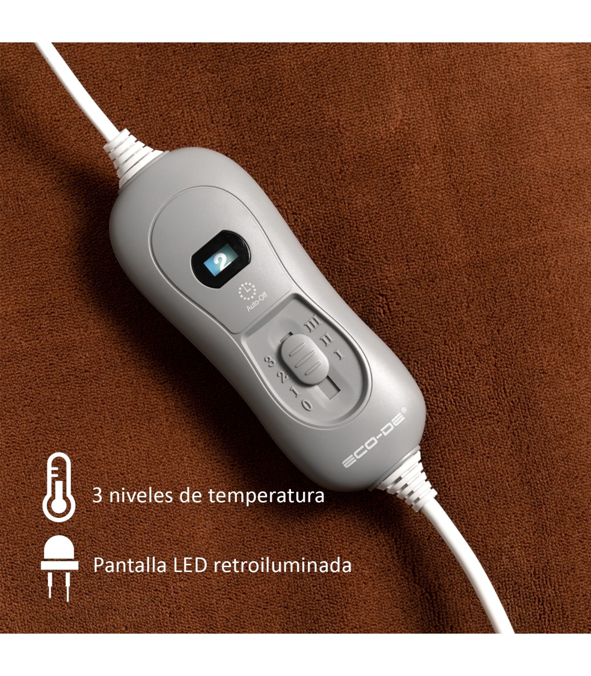 ECODE Electric Blanket 180 x 130 cm. Control with 3 heat settings, automatic shut-off after 90 minutes, blue color."