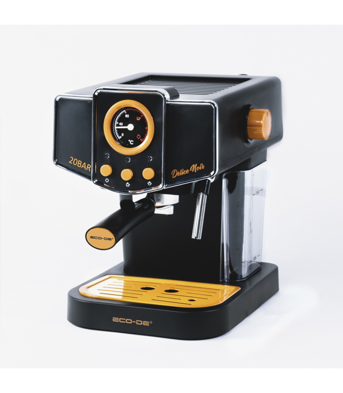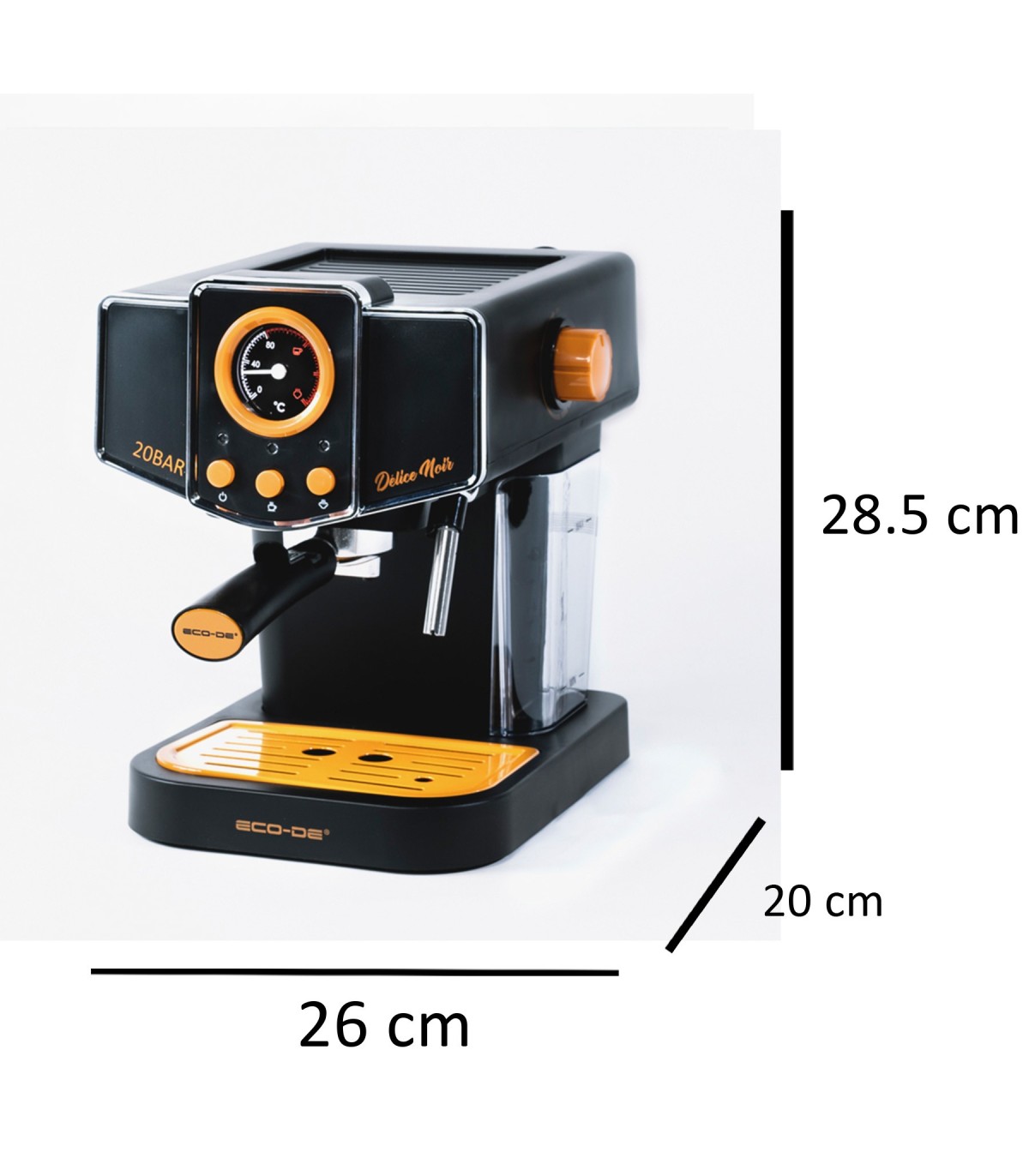 ECODE® Espresso Machine DELICE NOIR, 20 Bar Pressure, Vaporizer, 1.5 Liter Tank, Manometer with Temperature