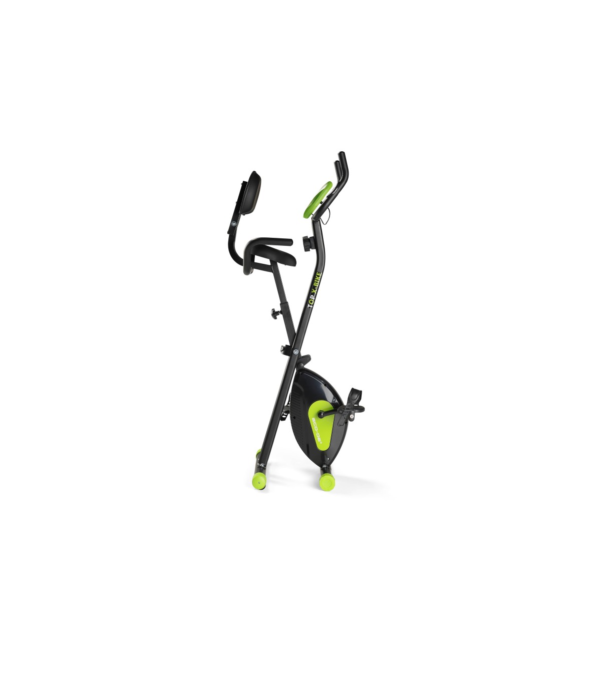 ECODE folding exercise bike, multifunction lcd display, flywheel, manually adjustable resistance levels, 8 levels, heart rate sensor, double handlebars, multiexercise, adjustable handlebars and saddle.