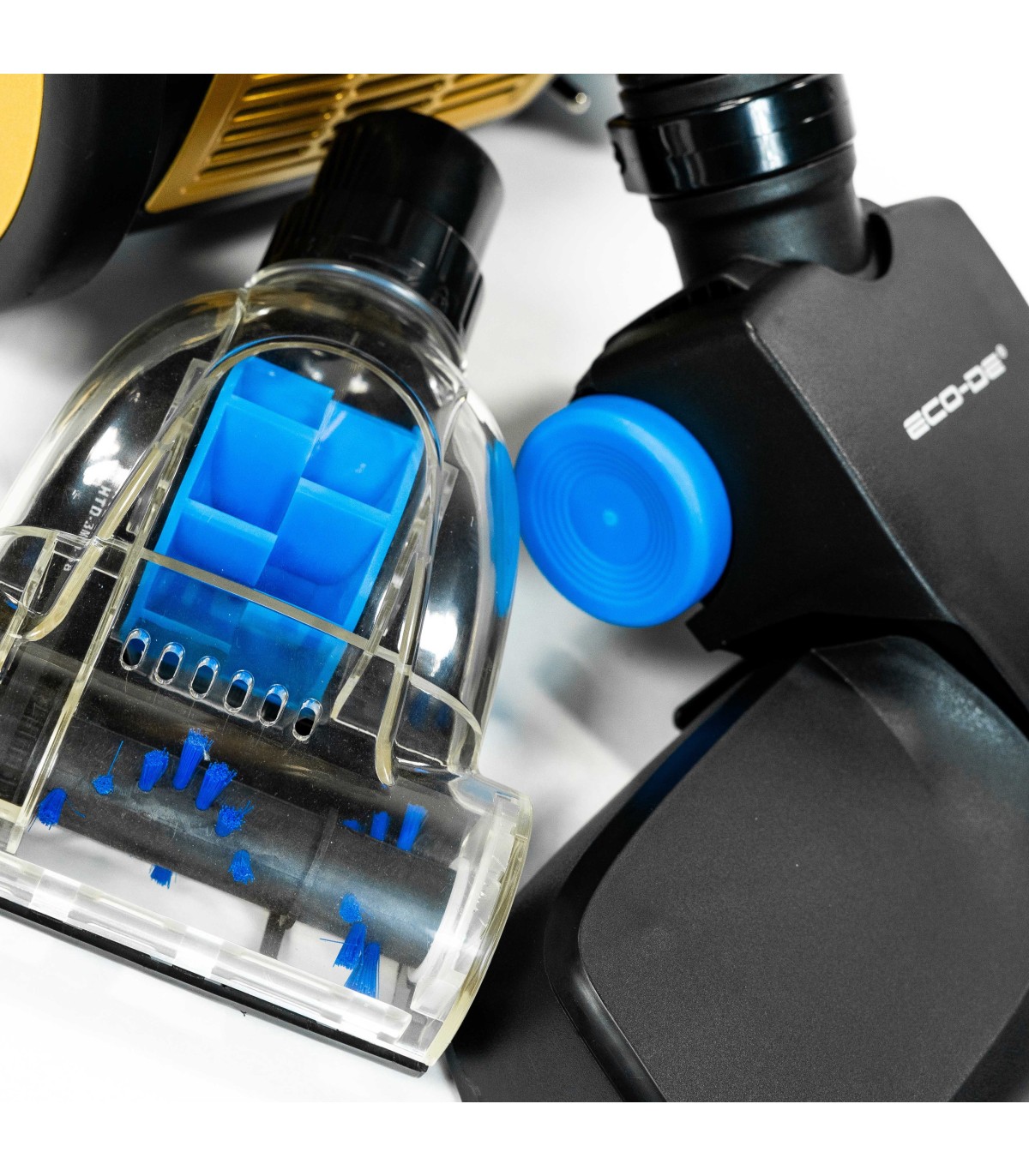 ECODE Aspirador de Trineo Multiciclónico, Doble Filtro HEPA de alta eficiencia sin Bolsa. 900W de potencia con cable de 5 metros. 5 cepillos distintos. Todas las superficies. Modo ECO