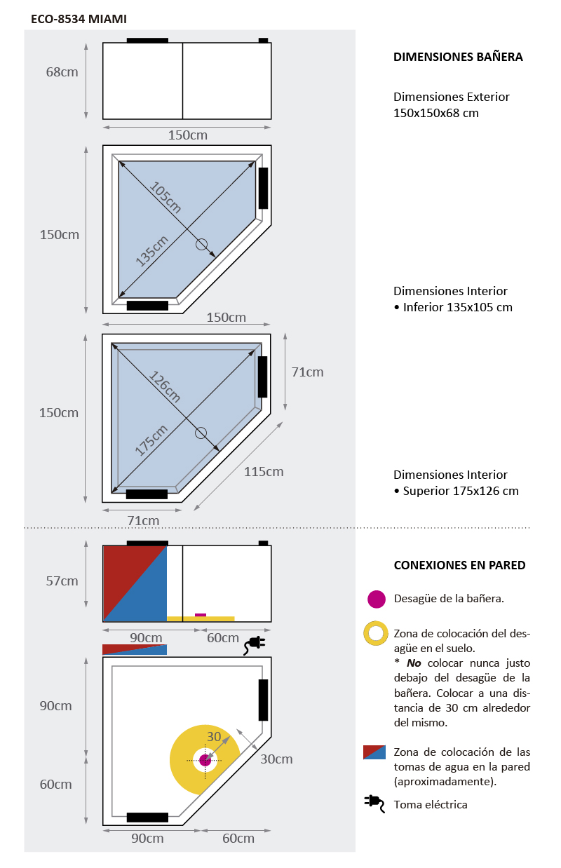 ECODE Spa con hidromasaje, jacuzzi baño con cromoterapia, jets de aire, jets de agua, grifería