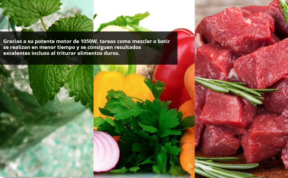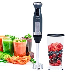 ECODE Batidora De Mano, Batidora De Varilla, Cuchillas de Titanio. 2 niveles de potencia. Vaso medidor 800ml. 20 velocidades. 1050W. Velocidad Turbo.