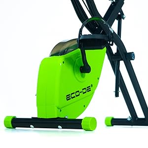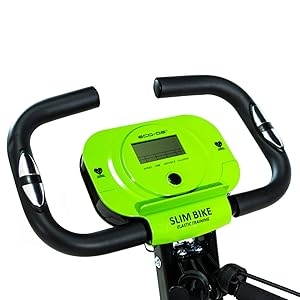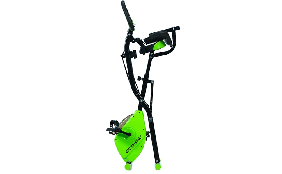 ECODE bicicleta estática plegable, pantalla lcd multifunción, volante de inercia, niveles de resistencia regulables manualmente, 8 niveles , sensor de frequencia cardiaca, doble manillar, multiejercicios, manillar y sillín regulable.