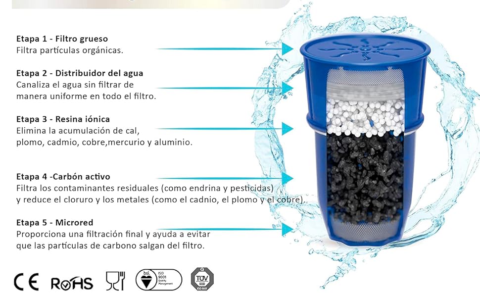 ECODE Dispensador de Agua Fría y Natural. 2,8 L, Filtro Multicapa, Refrigeración Termoeléctrica. Filtro incluido. Reduce cloro, cal e impurezas.