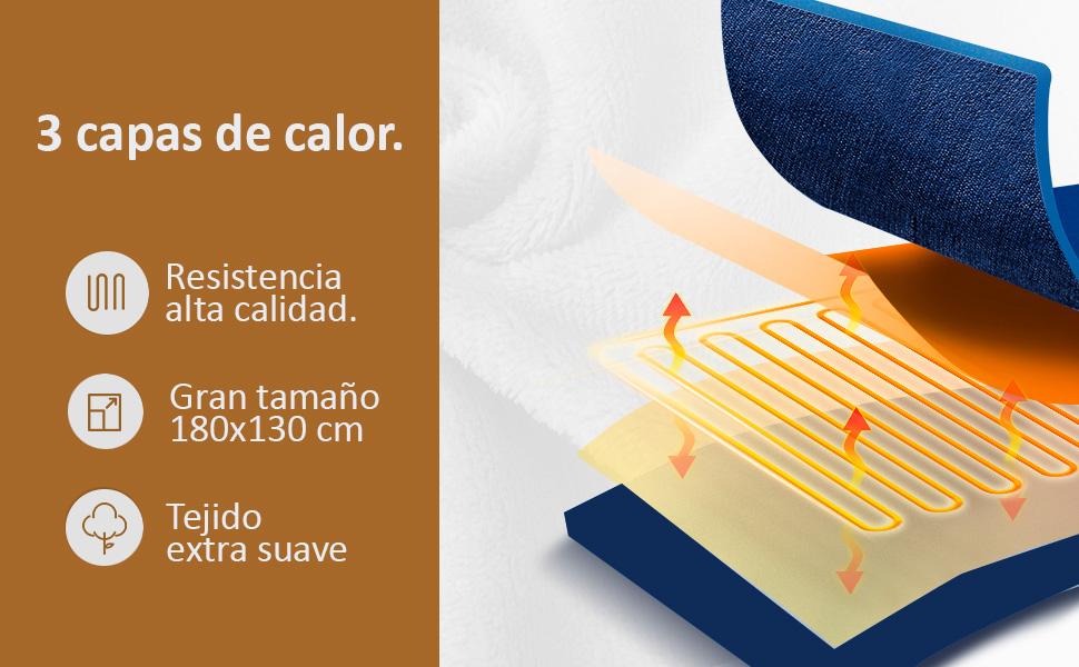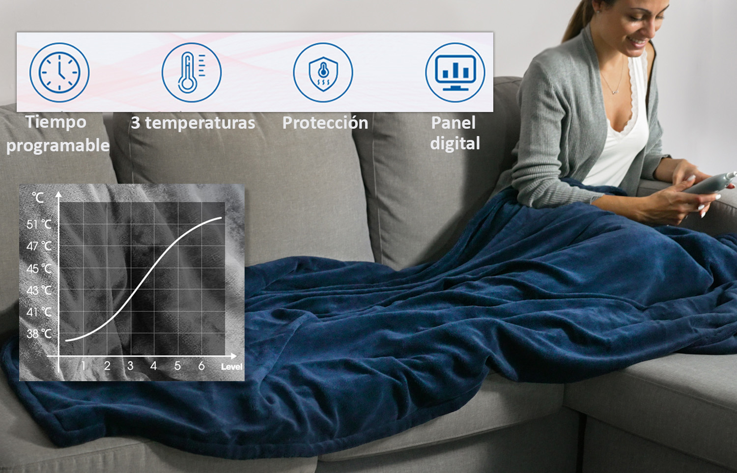 ECODE Manta Térmica eléctrica. Mando con 3 niveles de calor, apagado automático. Protección frente a sobrecalentamiento. Lavable a máquina.