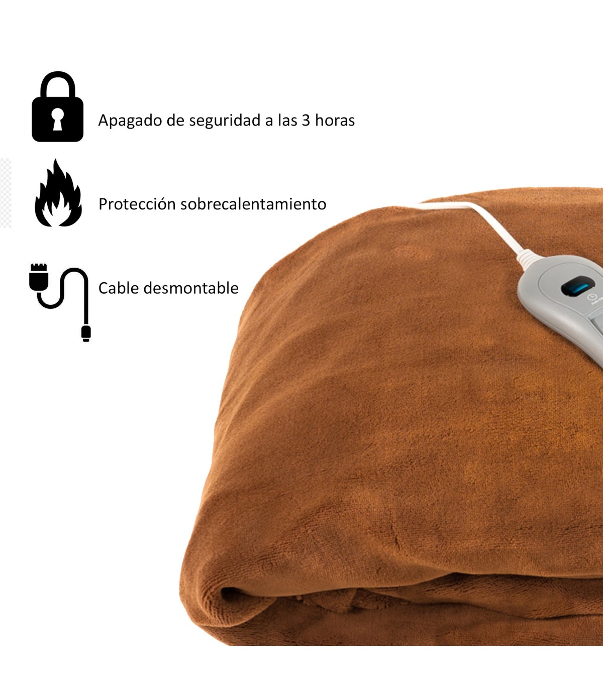 ECODE Manta Térmica eléctrica. Mando con 3 niveles de calor, apagado automático. Protección frente a sobrecalentamiento. Lavable a máquina.