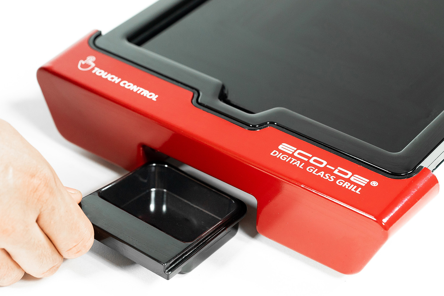 ECODE Plancha de Asar Eléctrica Digital. Termostato Regulable, Superficie de Cocción de Cristal antiadherente, Panel de Control Táctil, Bandeja Recoge Grasa. 1000W