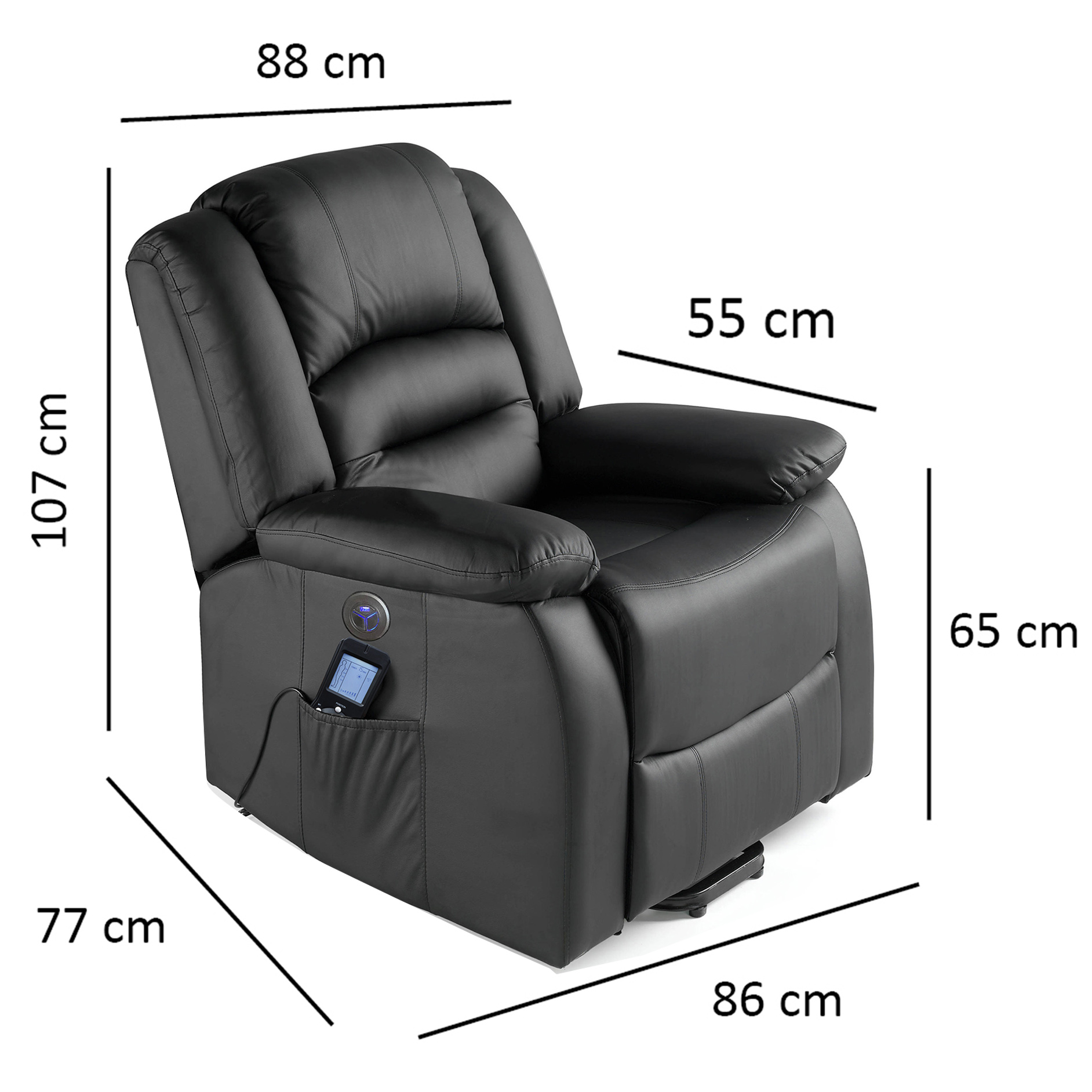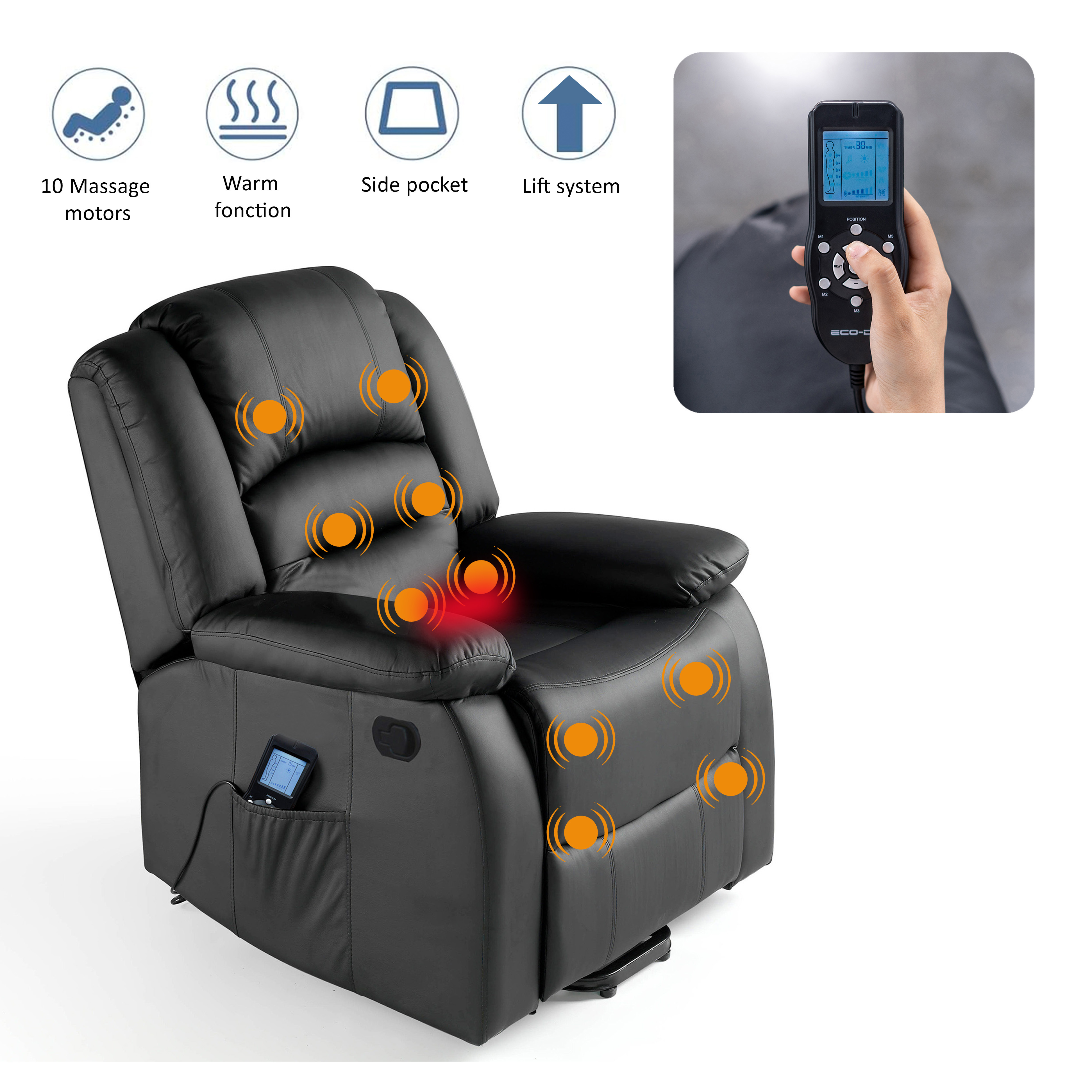 ECODE Sillón de Masaje. 9 programas con Calor Lumbar, Polipiel, reclinación Manual, 10 vibromotores. Masaje y termoterapia. Control por mando