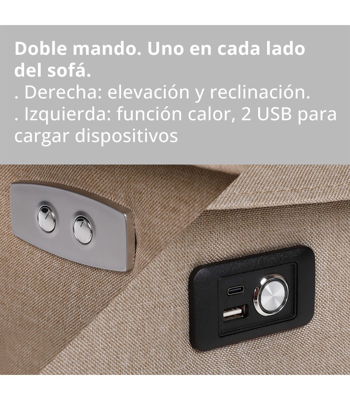 Masaje en uno de los lados, Tela de la mejor calidad, Reclinación eléctrica, Reclinación independiente de cada lado