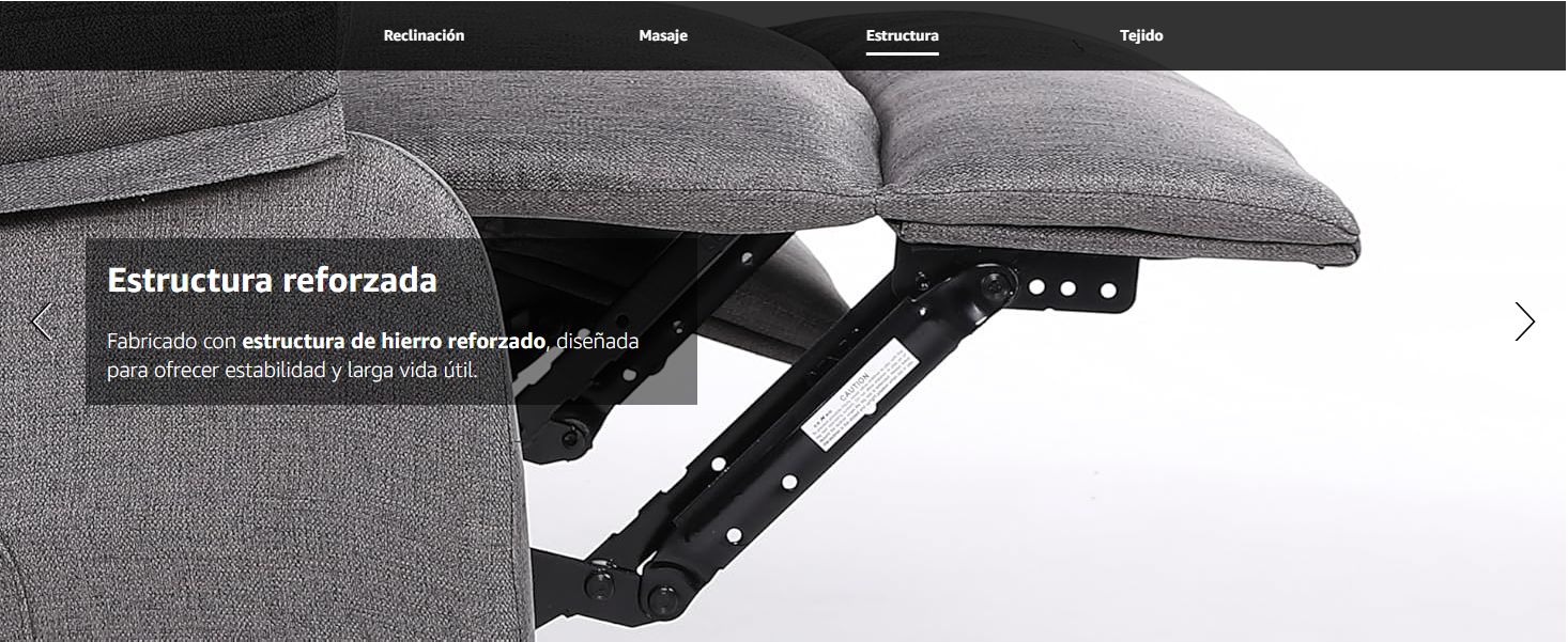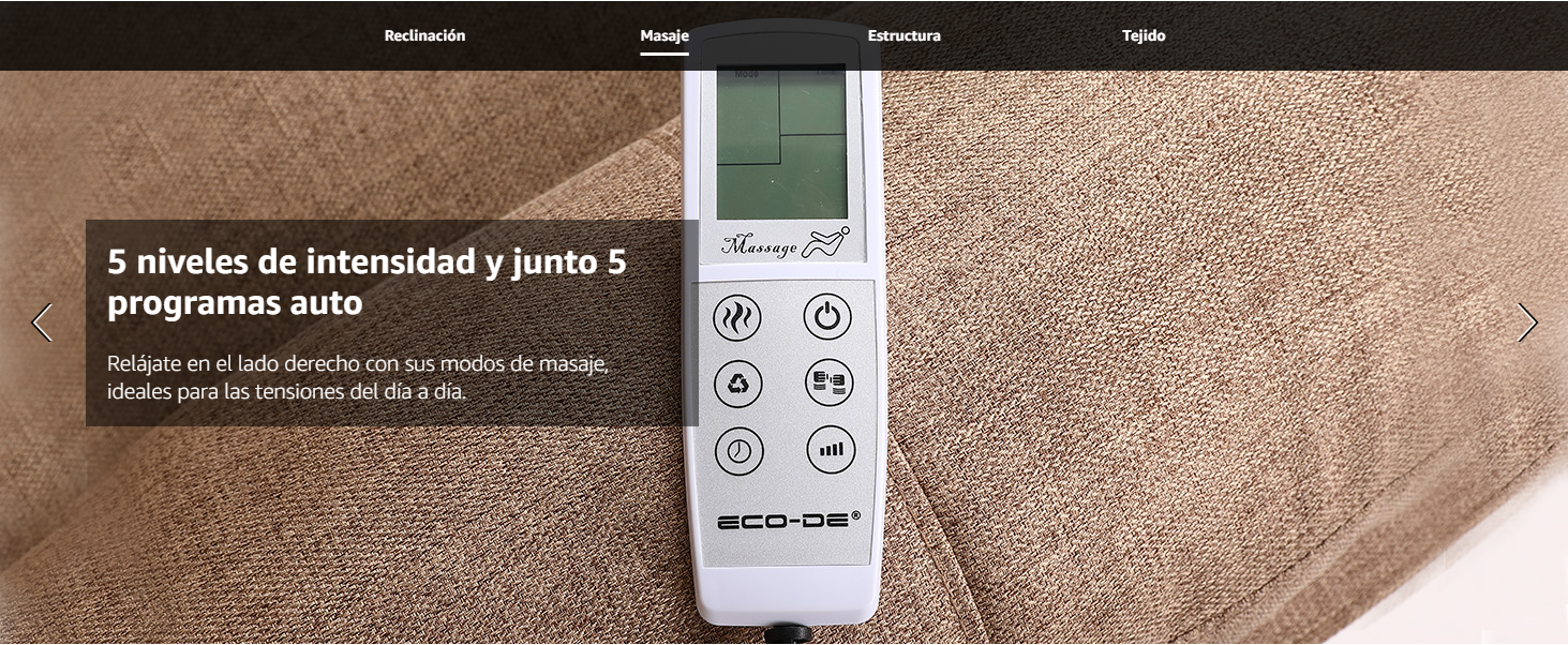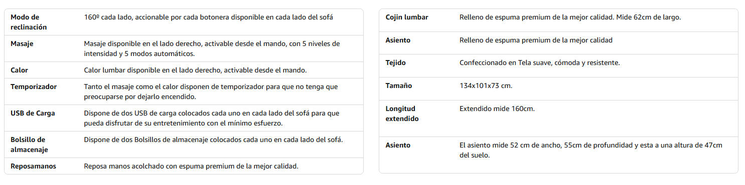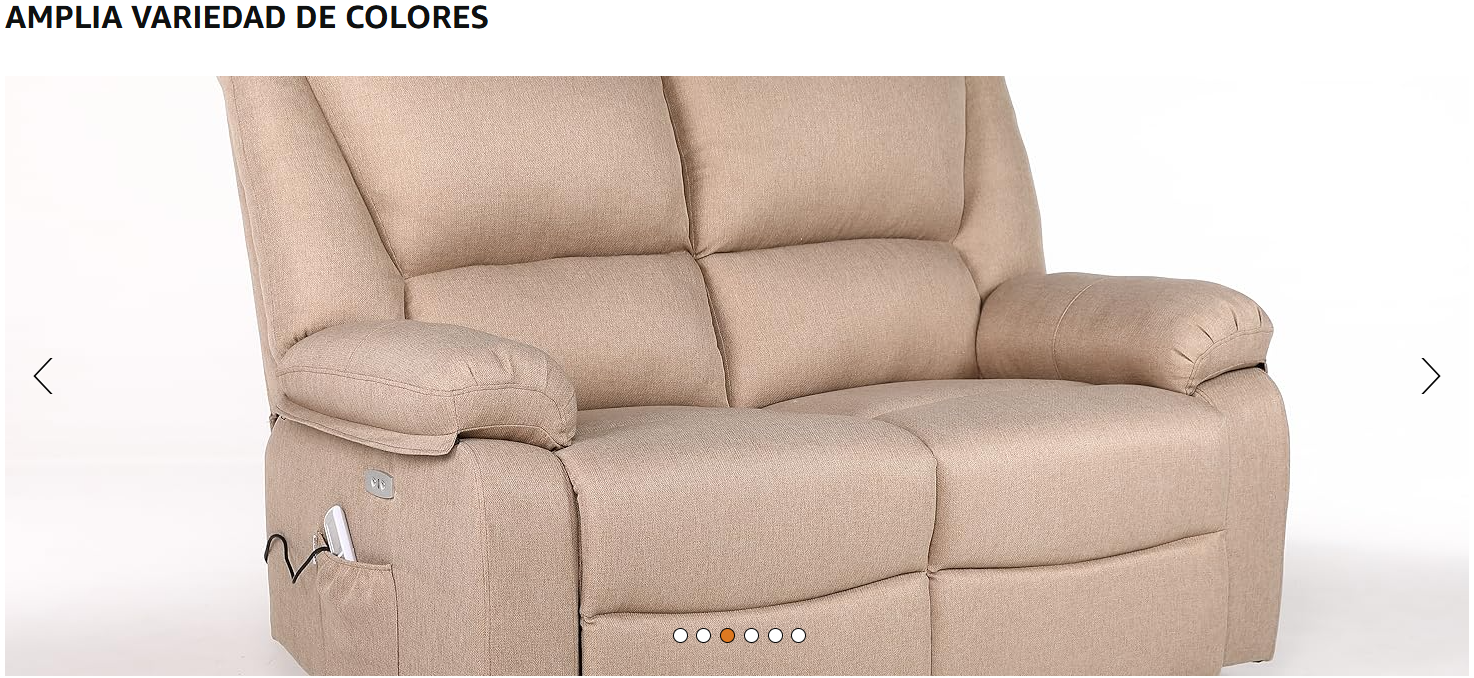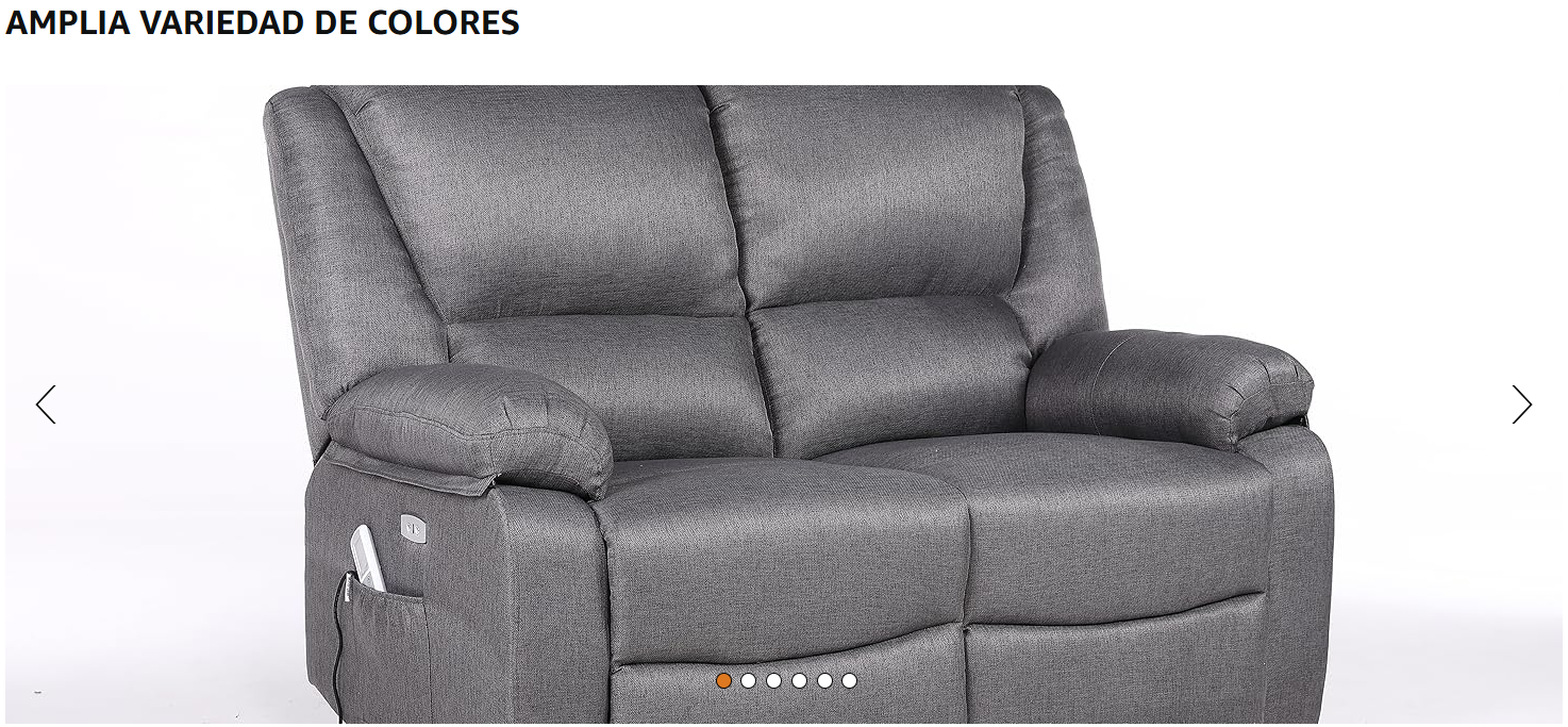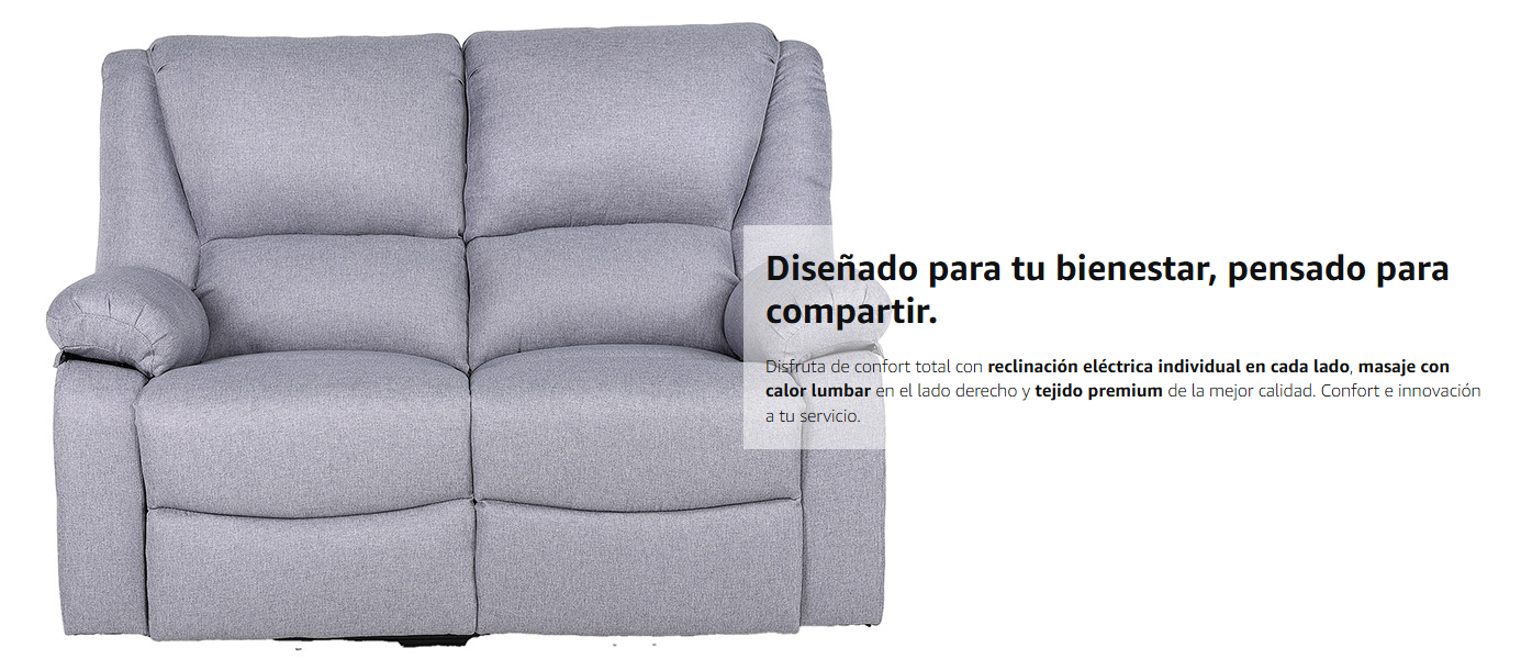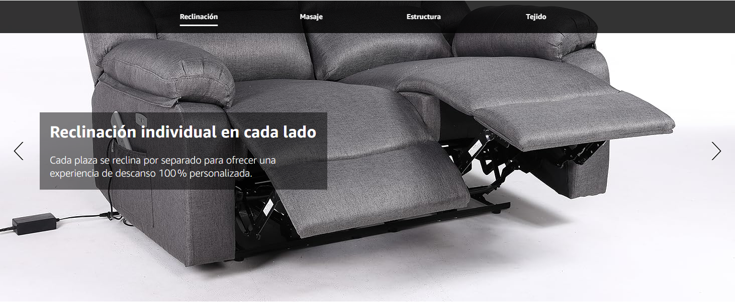Masaje en uno de los lados, Tela de la mejor calidad, Reclinación eléctrica, Reclinación independiente de cada lado