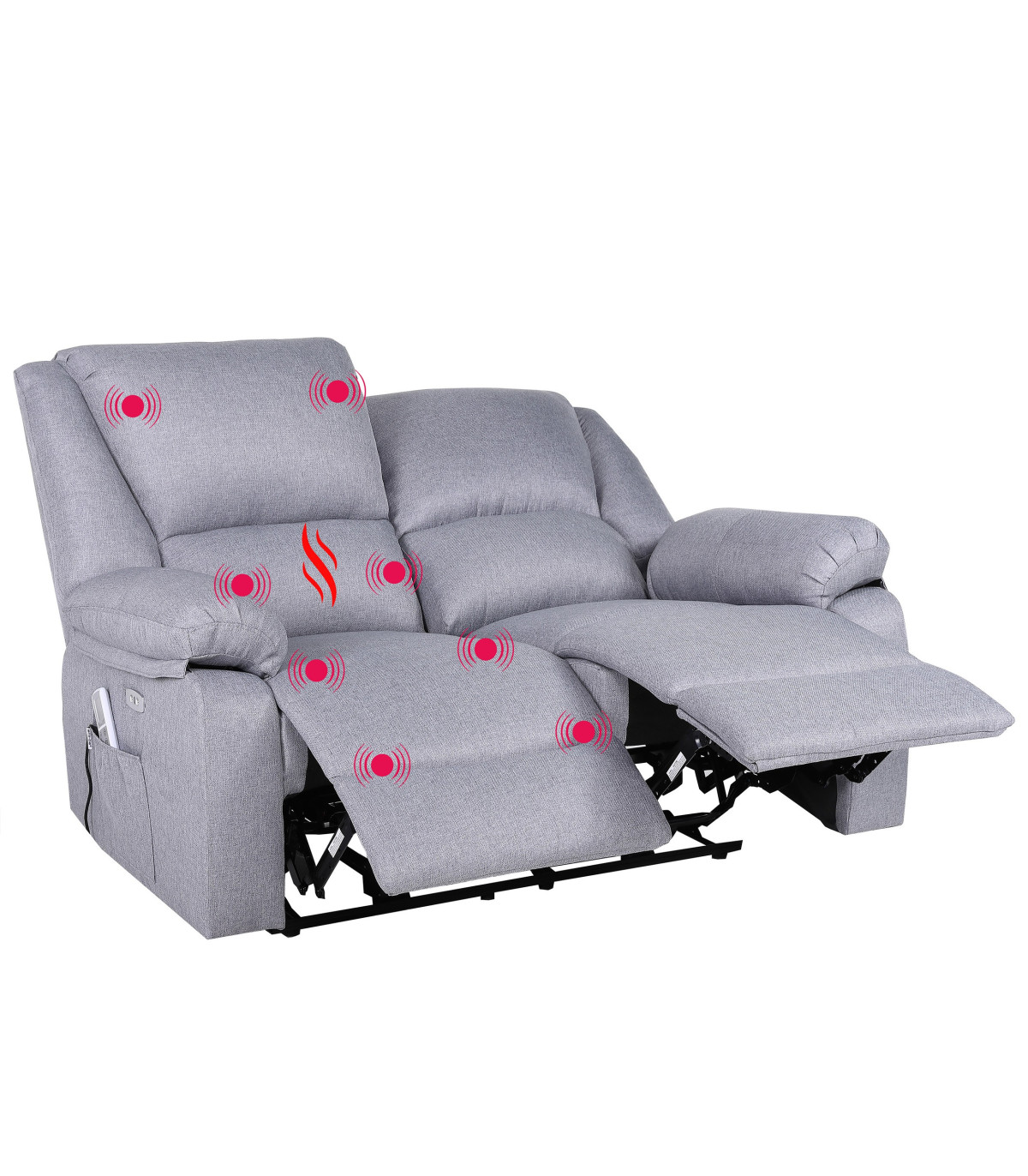 ECODE® Sofa 2 Plazas con Reclinacion Independiente Electrica y Masaje - Modo Reclinable TV Independiente en Cada Lado, 8 Vibromotores, Calor Lumbar, Doble Botonera (Gris claro)