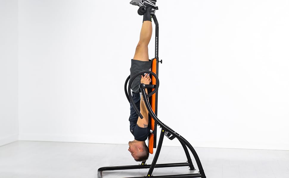 ECODE Tabla de Inversión Gravitacional. Inclinación 180º, Acolchada, Regulable en Altura, plegable, soporta 130 kg de peso, tabla inversión espalda, correa de seguridad