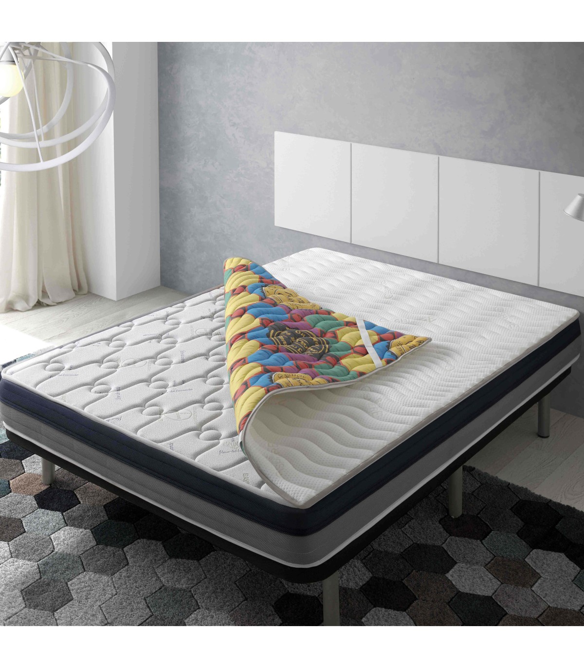 El Renueva colchón Deluxe 4D devuelve la energía consumida durante el día, oxigena el cuerpo, protege contra las dolencias y alivia dolores gracias a los rayos infrarrojos e iones de la Turmalina.