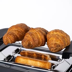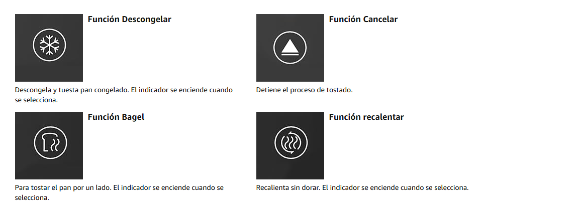 7 tipos de intensidad de tostado, siendo 7 el nivel más alto, para conseguir el tipo de dorado deseado en sus rebanadas de pan. En el caso de la izquierda estaría en la intensidad de tostado nº5.