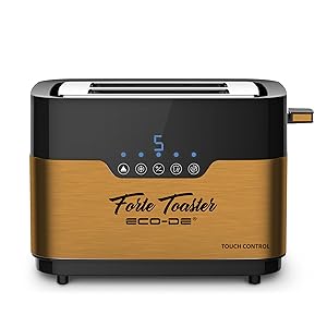 ECODE® Tostadora "FORTE TOASTER", 920W panel control táctil indicador LED, Doble Ranura, Ranuras Extra Anchas, 7 Niveles Tueste