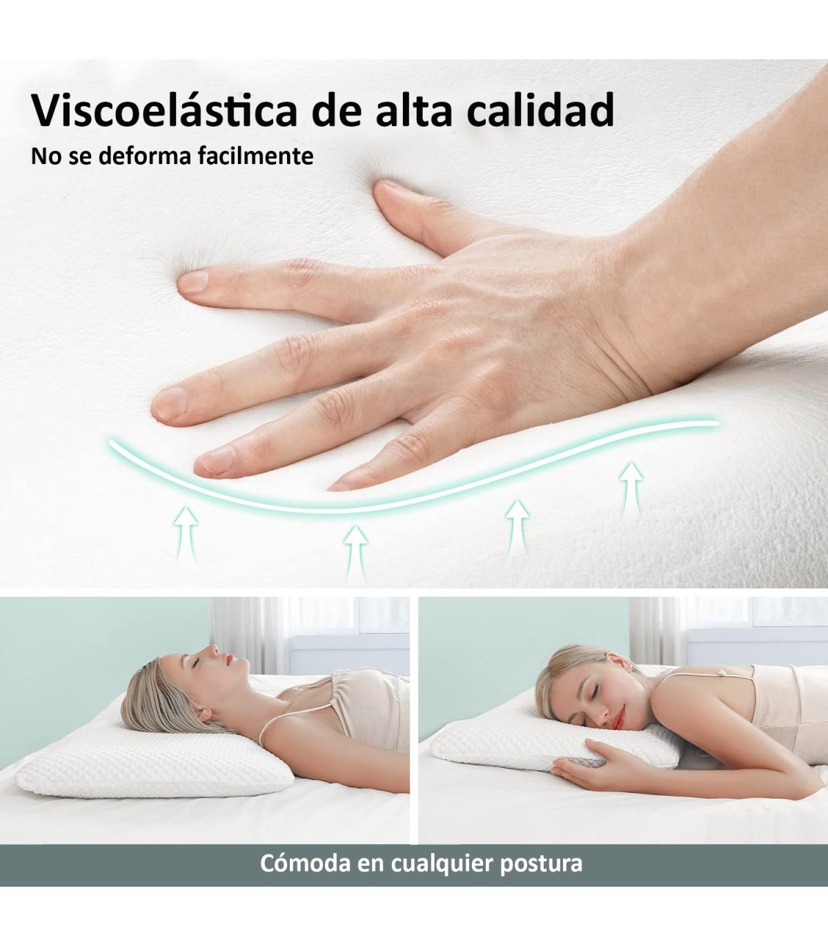 Almohada viscoelástica con núcleo 100% Viscoelástico, Funda Desenfundable, Ergonómica, Anti bacterias, Termo regulable, Anti ácaros, Doble Funda con cremallera, Lavable, Firmeza Media, Adaptabilidad cervical. 75x14x40cm