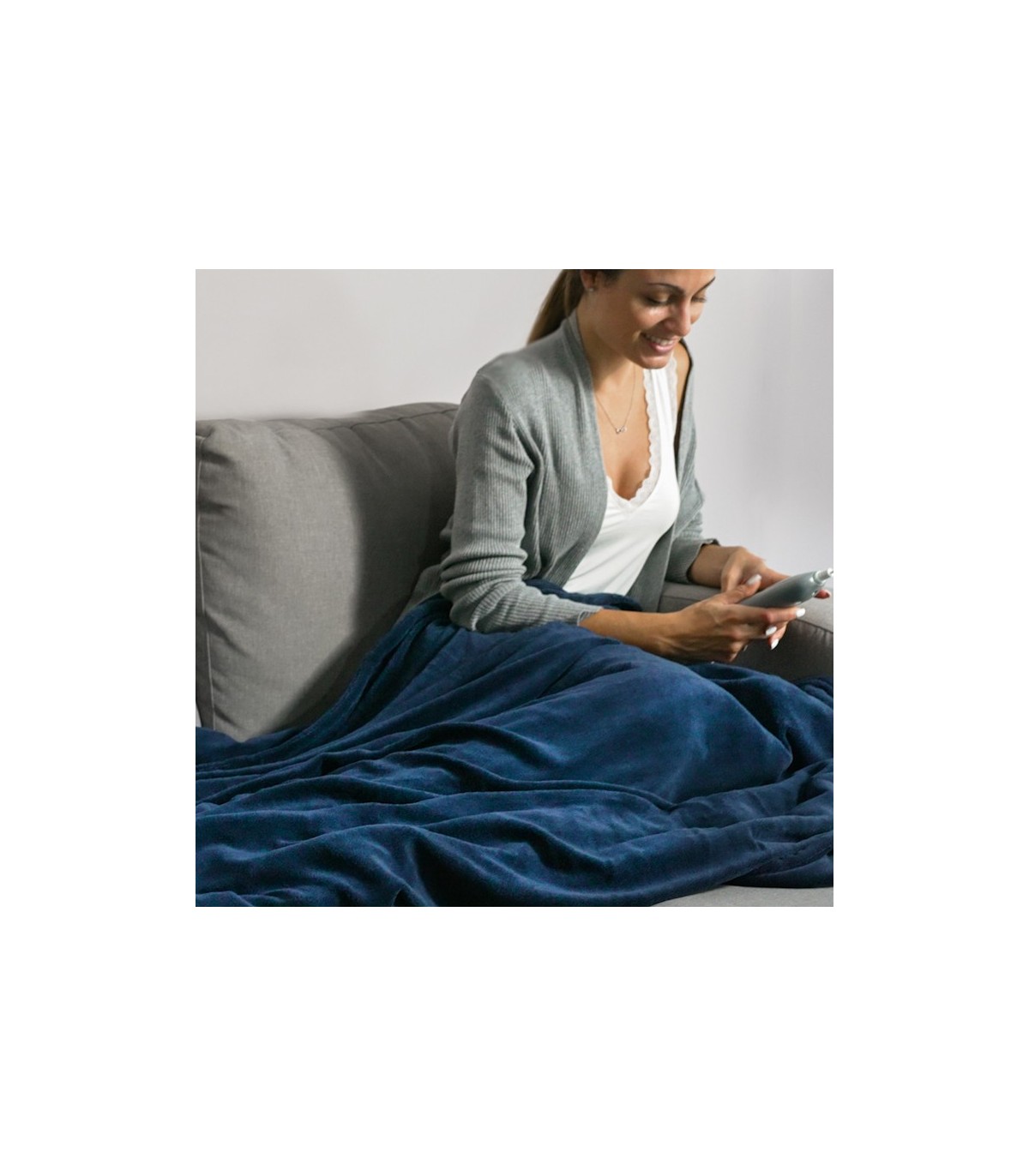 - Composition : La couverture chauffante mesure 180 x 130 cm. Disponible en marron clair ou bleu marine.