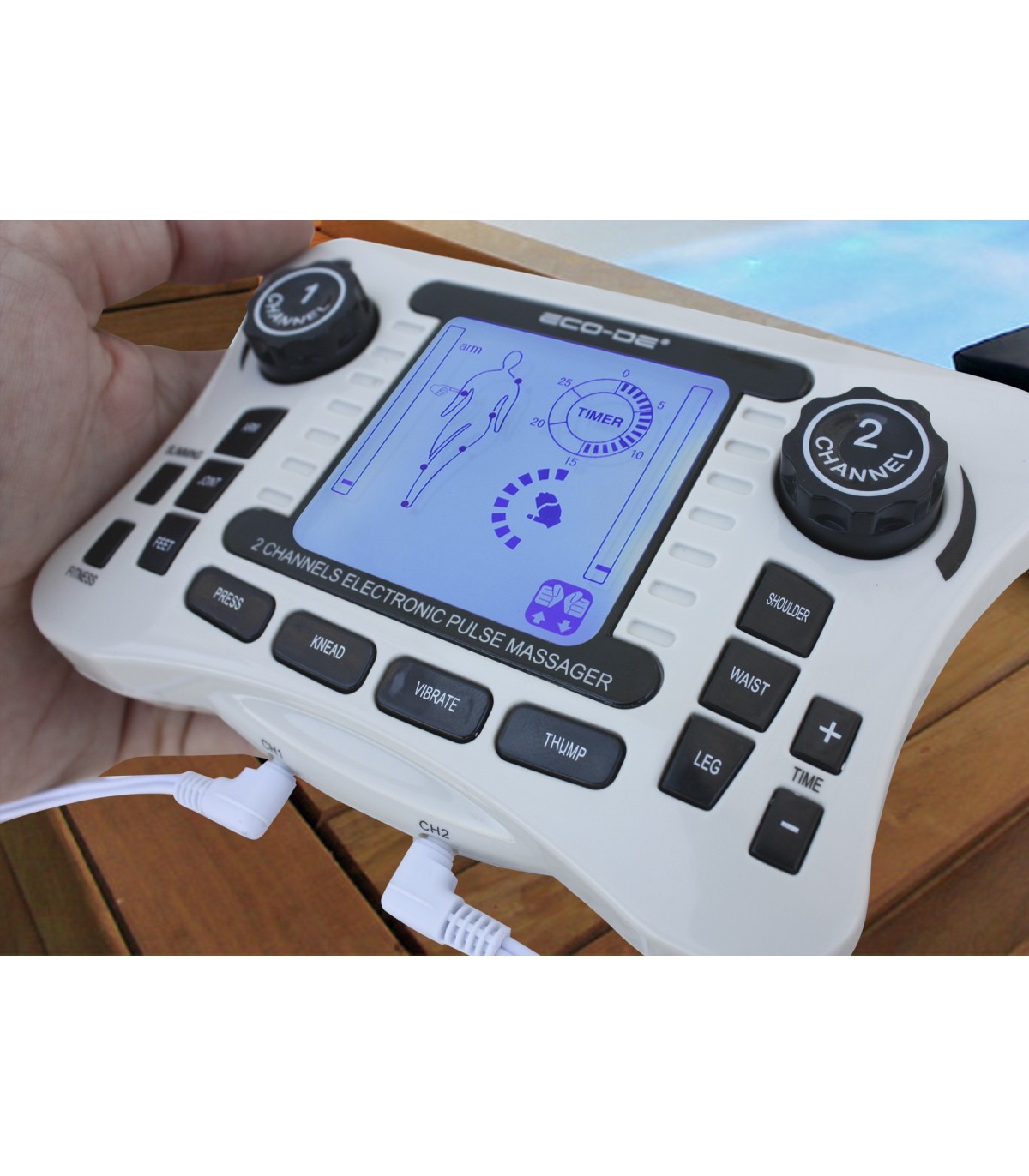 - L'électrostimulateur ECO-308 de ECO-DE utilise des impulsions qui imitent l'action du système nerveux central, provoquant la contraction musculaire.