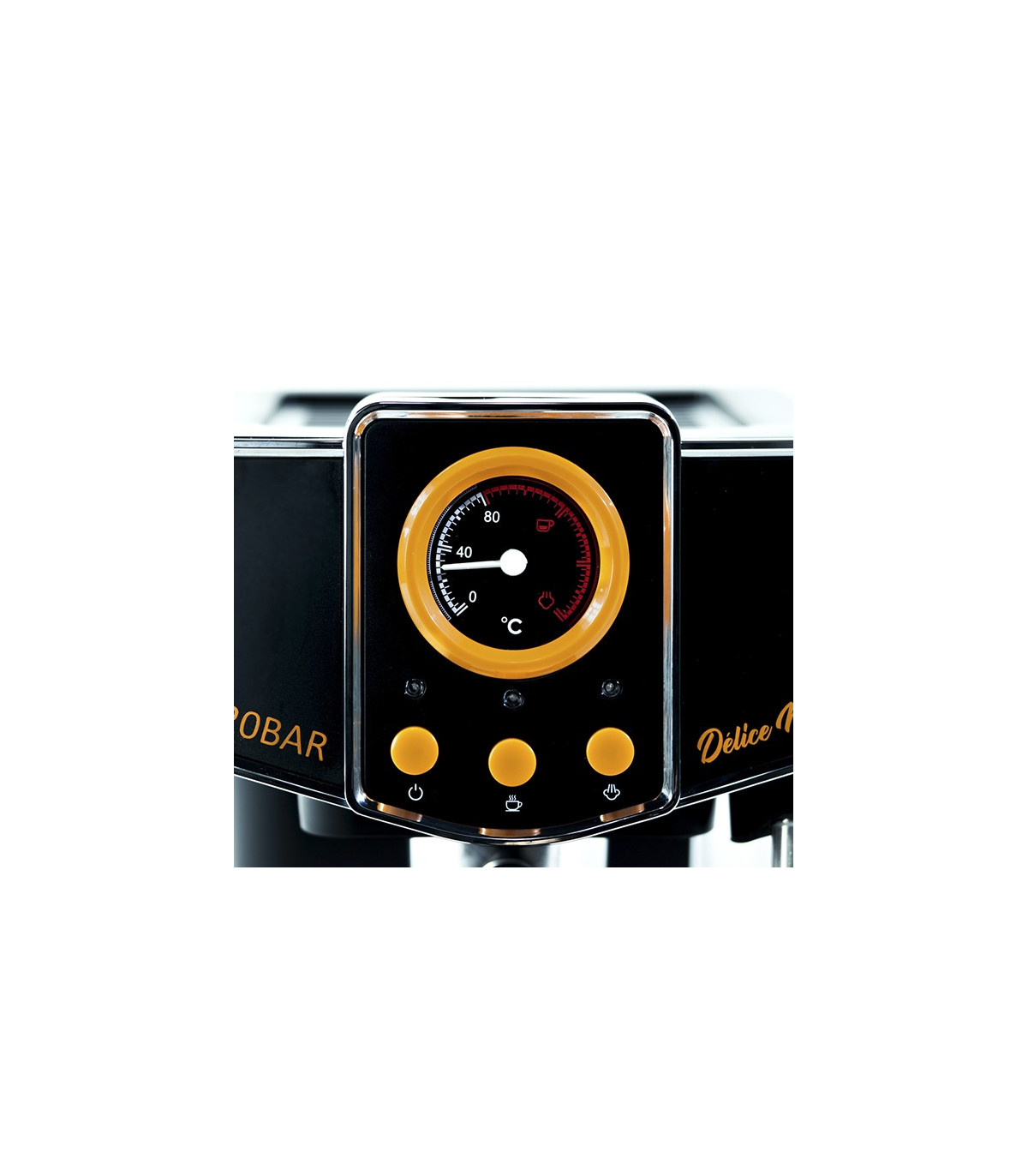 Il intègre une jauge de température EASY USE, vous pouvez préparer de délicieux cafés avec la meilleure texture, arôme, pression et température... simplement en contrôlant la jauge et en préparant le café au moment idéal. Ses 1050 W vous permettront de préparer des cappuccinos mousseux grâce à sa mousse télescopique.