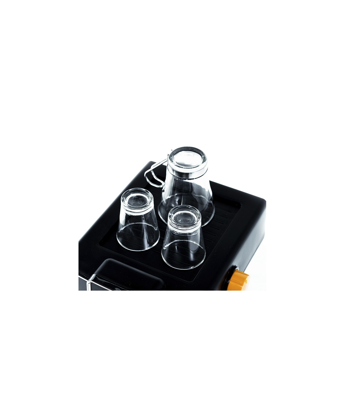Boutons colorés, d'utilisation simple et intuitive, régulateur de vapeur latéral… Porte-gobelet avec système de chauffage de maintenance…