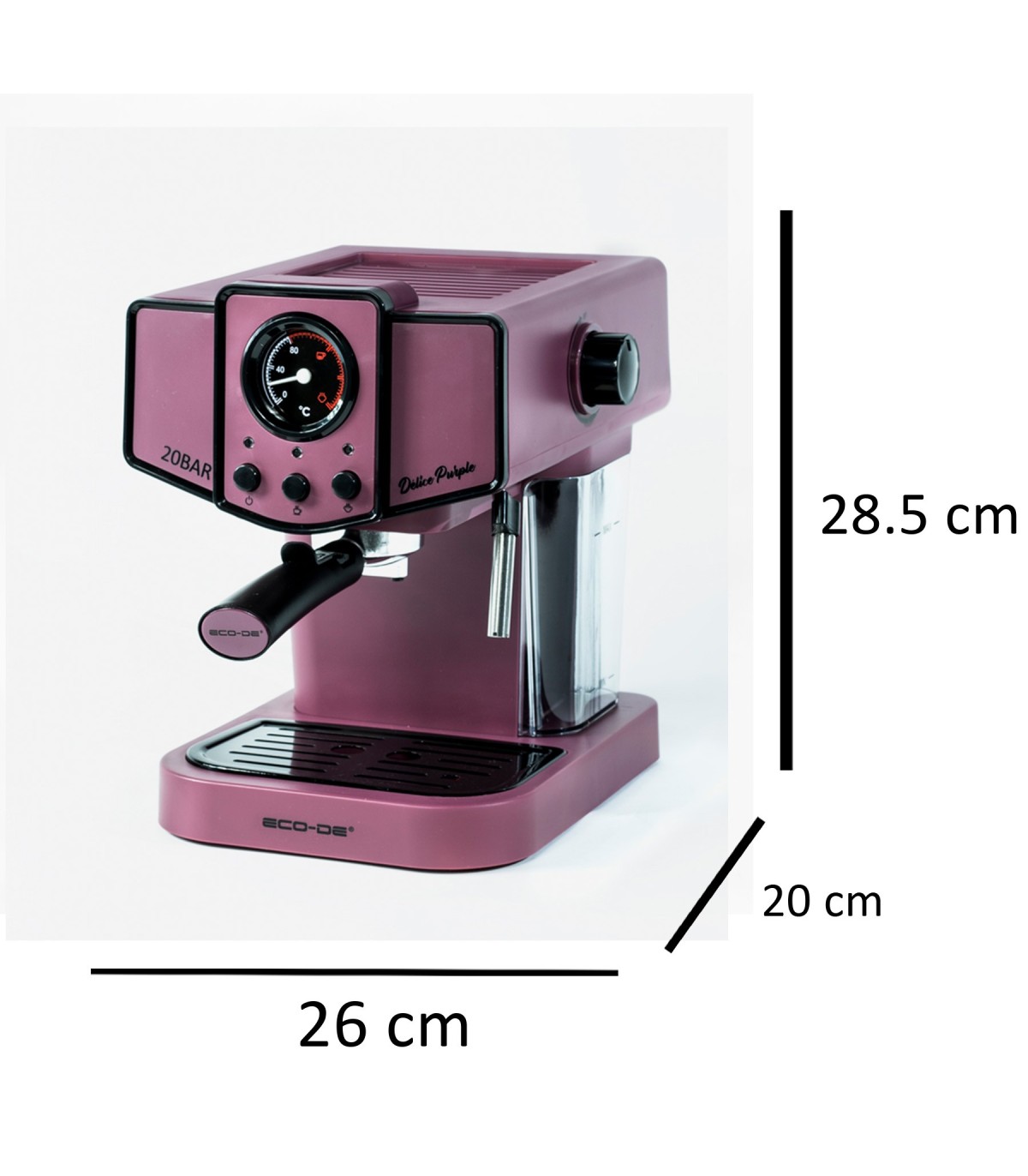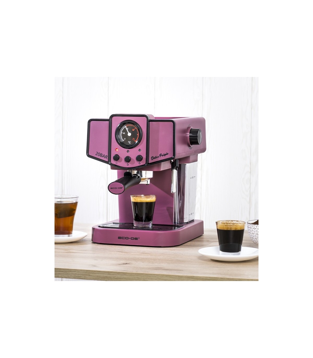 ECODE® Machine a café "DELICE PURPLE" 20 BAR, BUSE POUR MOUSSE Cafetière Espresso DELICE PURPLE, Pression 20 Bar, Vapeur, Réservoir 1.5 Litre, Manomètre avec Température