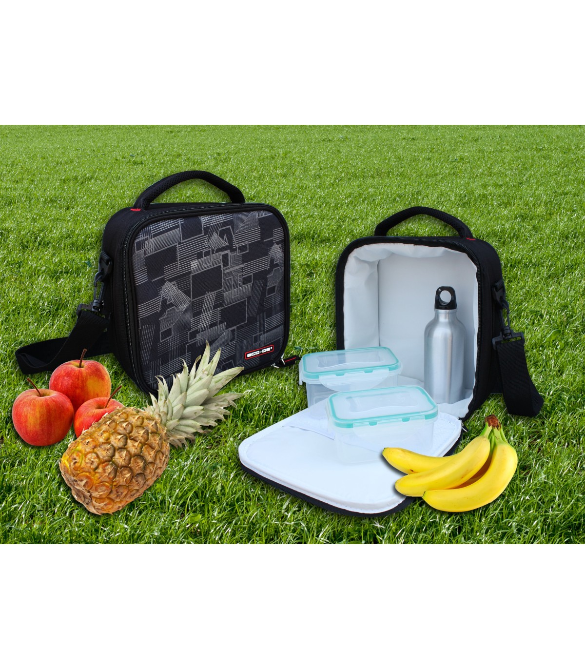 ECODE® Sac Isotherme pour nourriture Série Deluxe avec 2 tuppers (350 et 600 ml) et Thérmo Aluminium (300mL)