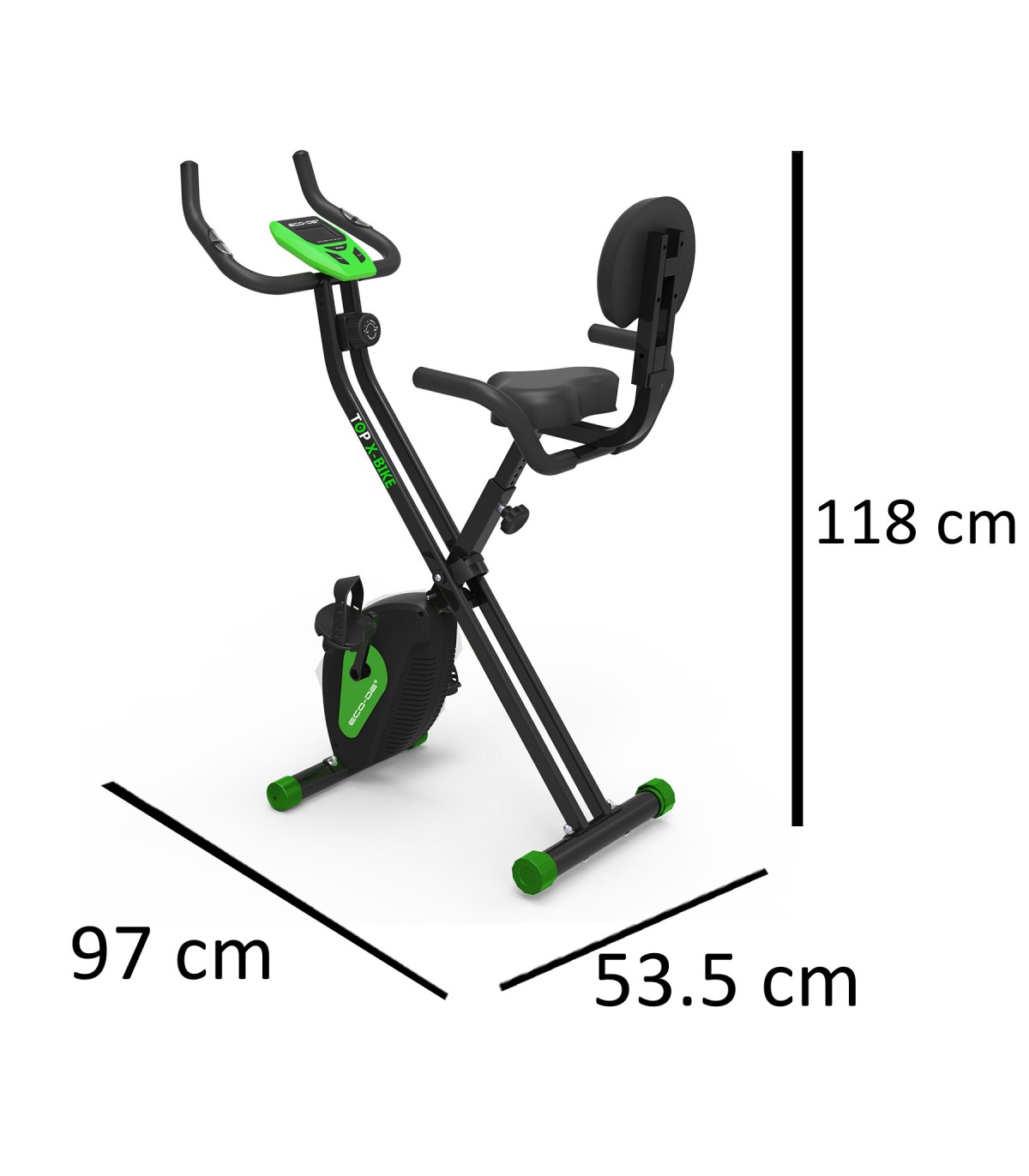 Vélo d'exercice pliant ECODE, écran lcd multifonction, roue d'inertie, niveaux de résistance réglables manuellement, 8 niveaux, capteur de fréquence cardiaque, double guidon, multi-exercices, guidon et selle réglables.