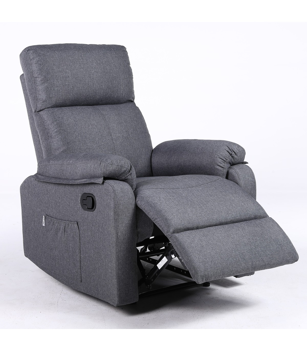 Fauteuil de salon inclinable manuel ECODE® en tissu avec accoudoirs interchangeables et lavables, système Zero Wall avec position TV | Fauteuils de salon inclinables gris foncé