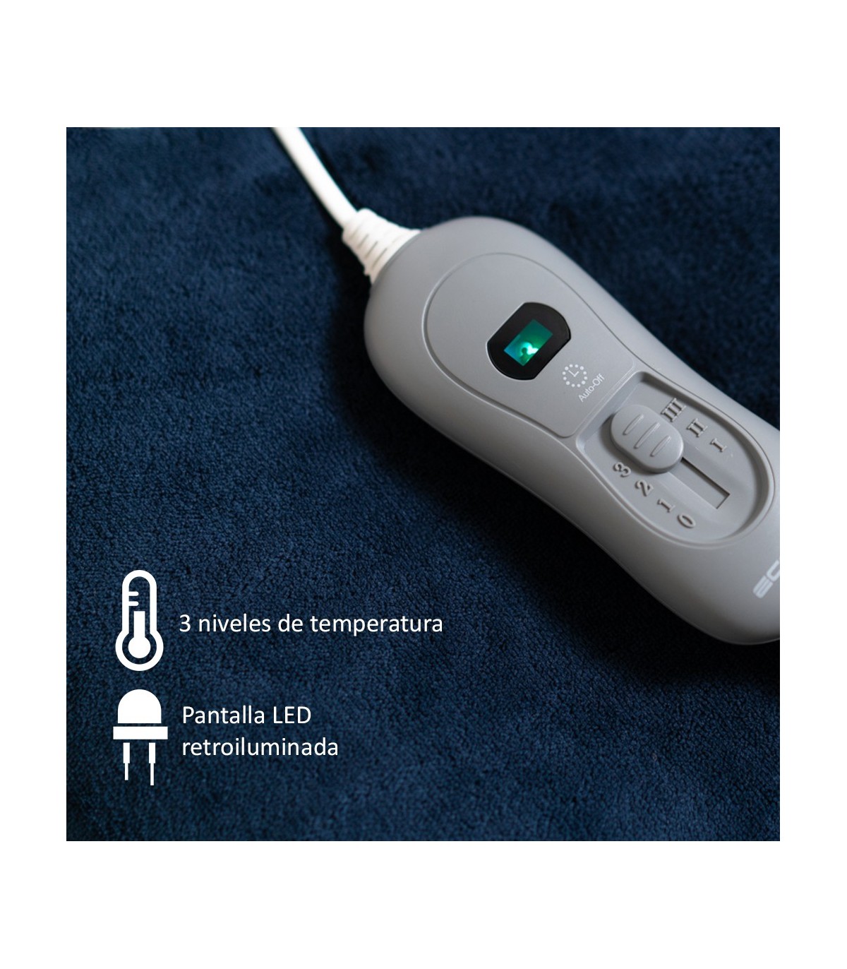 ECODE Coperta elettrica 180 x 130 cm. Controllo con 3 livelli di calore, spegnimento automatico 180 minuti, colore blu