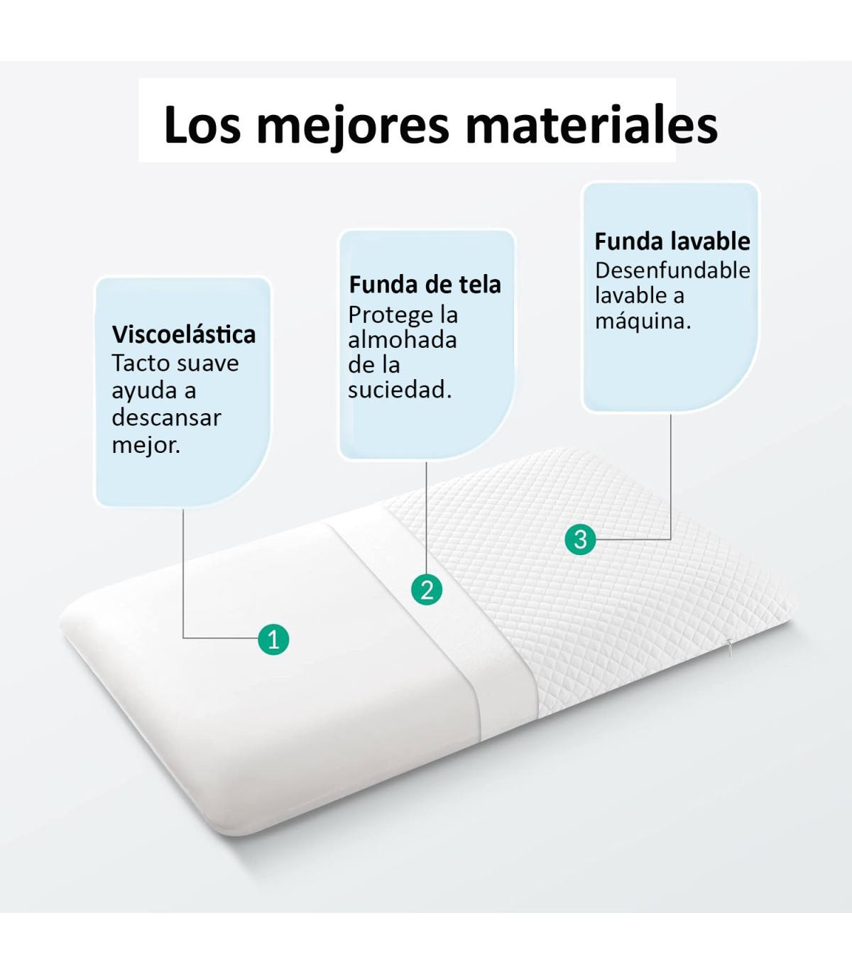 I guanciali viscoelastici ECO-DE® permettono di dormire con un adeguato riposo cervicale: offrono una grande adattabilità, rendendoli ideali per le persone che soffrono di dolori cervicali. 70x12x40 cm