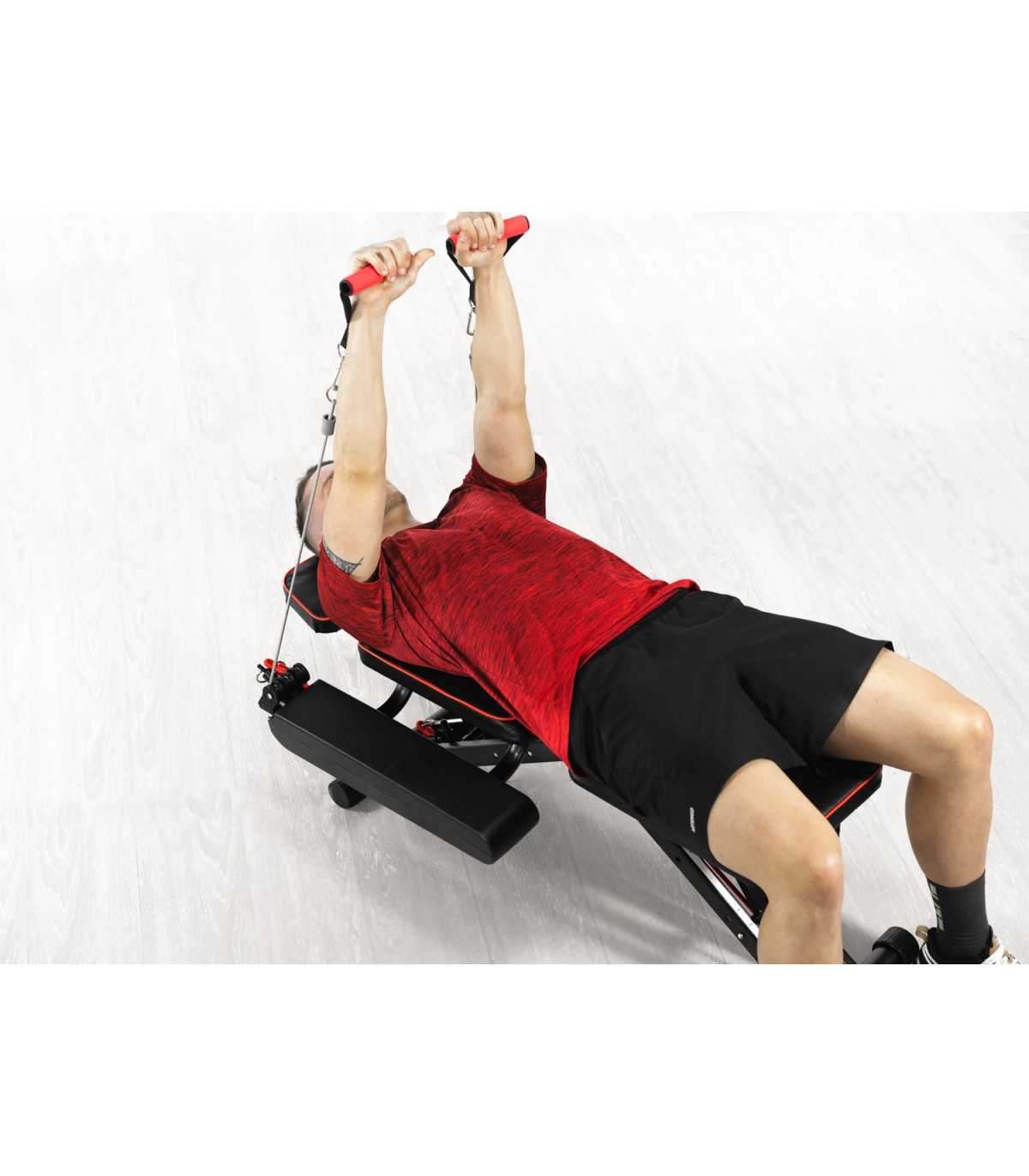 - Fitness completo ultra-compatto a più stazioni: permette di allenare tutti i gruppi muscolari senza dover andare in palestra. È possibile eseguire più di 50 esercizi nel comfort di casa propria, indipendentemente dall'età e dal livello di forma fisica.