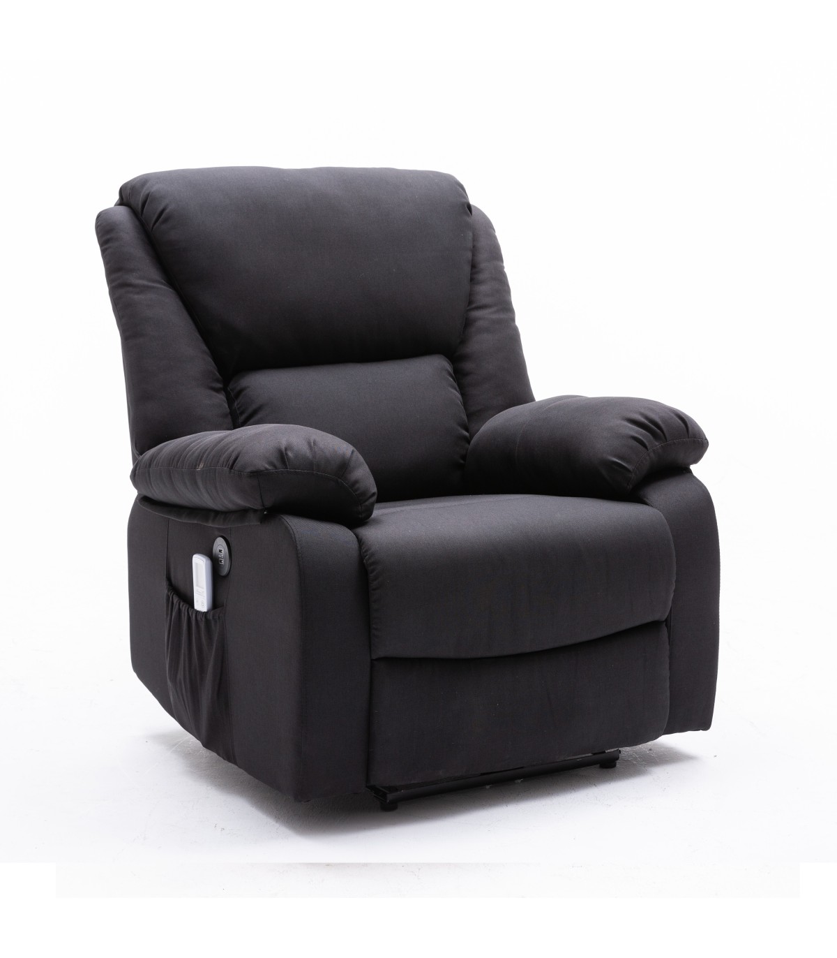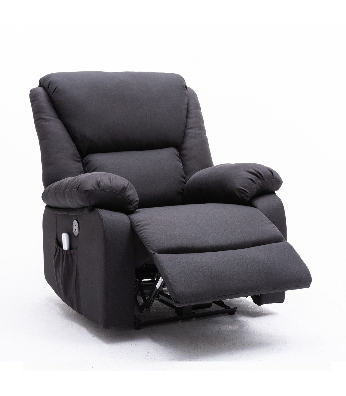 Poltrona massaggiante ECODE Personal Lift, 6 modalità di massaggio, sistema di sollevamento con telecomando, 2 prese USB laterali e LED, finitura in tessuto Textiline. Controllo tramite telecomando.