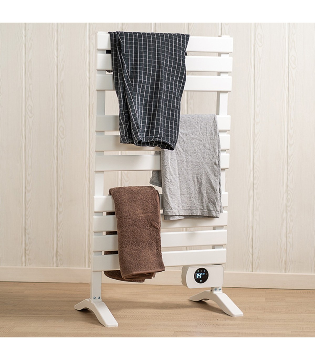 - "Towel Heat" ha 3 FUNZIONI: asciuga asciugamani, scalda indumenti (accappatoio, teli doccia, magliette di cotone) e scalda bagno o spogliatoio. Scaldasalviette elettrico in alluminio da 500 W. È in grado di condizionare una stanza di circa 8 metri quadrati. Programma 2 ore di preriscaldamento del bagno per riscaldare l'asciugamano o l'accappatoio e preriscaldare la stanza.