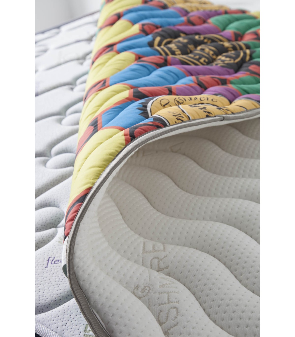 - Tessuto da rivestimento elasticizzato motivo continuo. Imbottitura: Visco Gel 1,5 cm + Fibra 300gr