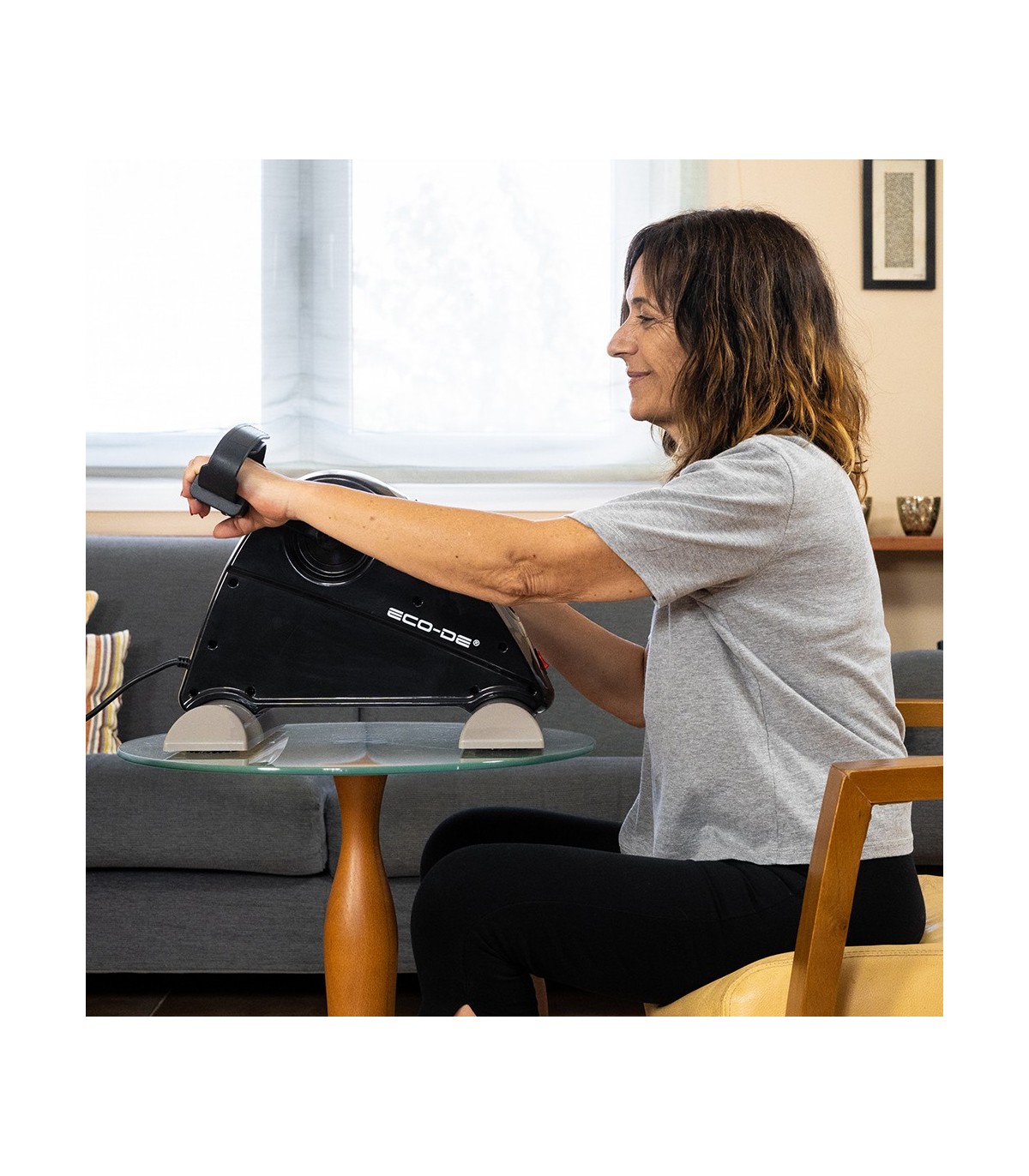 La bicicletta elettrica ECO-DE® “DUAL TRAINING” è un'opzione pratica per esercitare facilmente sia i muscoli delle gambe che delle braccia. Un attrezzo ginnico ideale per esercitare gambe e braccia per gli anziani.