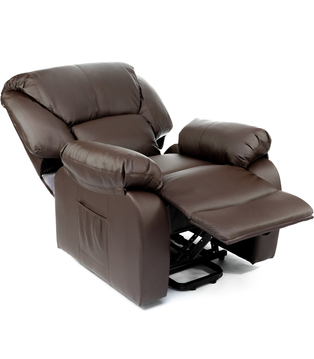 OUTLET ECODE® Poltrona Relax Reclinabile Manuale Massaggiante e Riscaldante con Poggiapiedi Poltrona Letto Comoda Per Anziani o da Interno Casa, Soggiorno, Salotto o Ufficio in Ecopelle (Marrone)