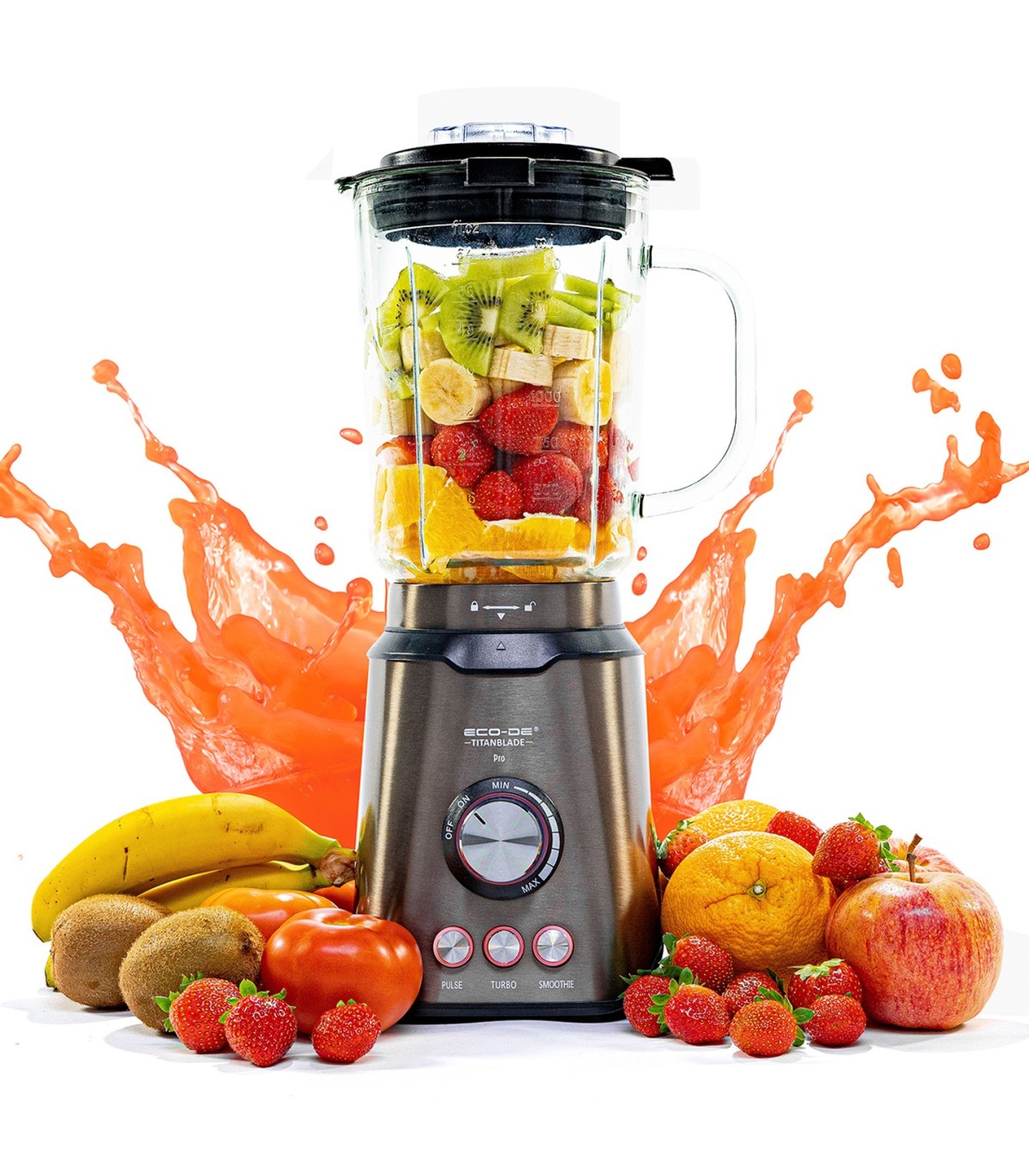 ECODE Batidora Americana De Vaso Titanblade Pro, Jarra Cristal 1890 ml Thermosecur, Cuchillas de 6 Hojas Titanio, Vaso De 40ml