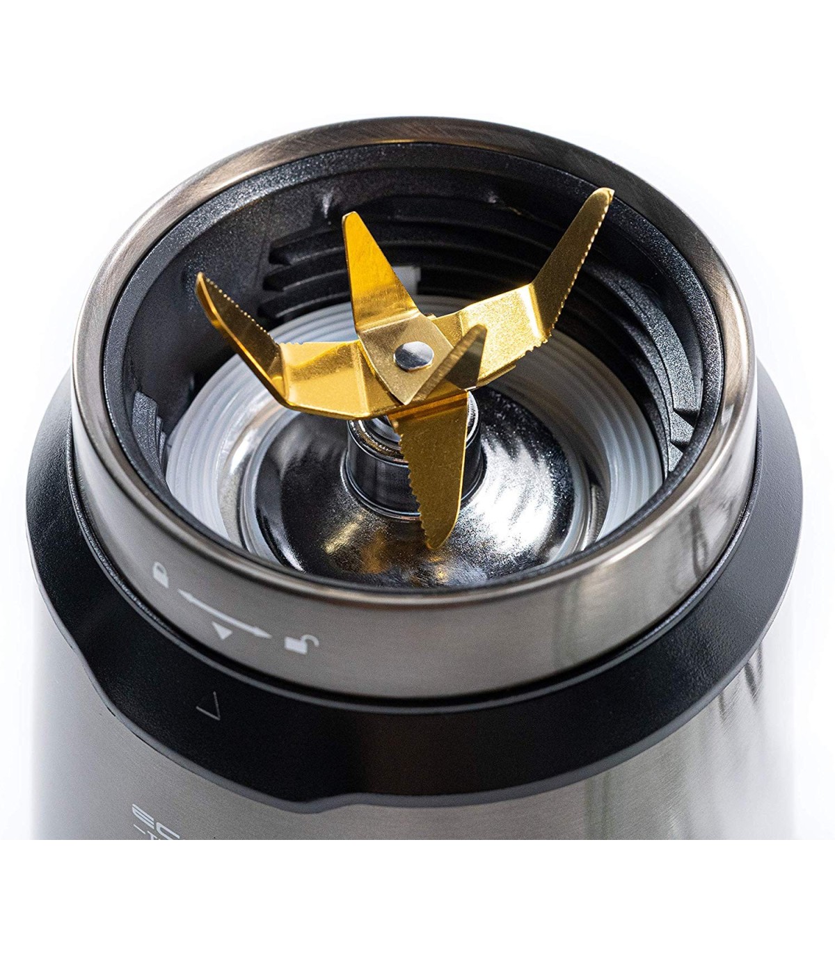 - Cuchillas con recubrimiento de Titanio de 6 Hojas con Sierra: Resultados profesionales ya que generan un efecto Ciclónico. 2 cuchillas laterales con sierra, 2 cuchillas centrales con filo y 2 cuchillas inferiores. Son desmontables y lavables incluso en Lavavajillas. Las cuchillas de Titanio no generan calor , lo que mejora el proceso de batido sin influenciar térmicamente.