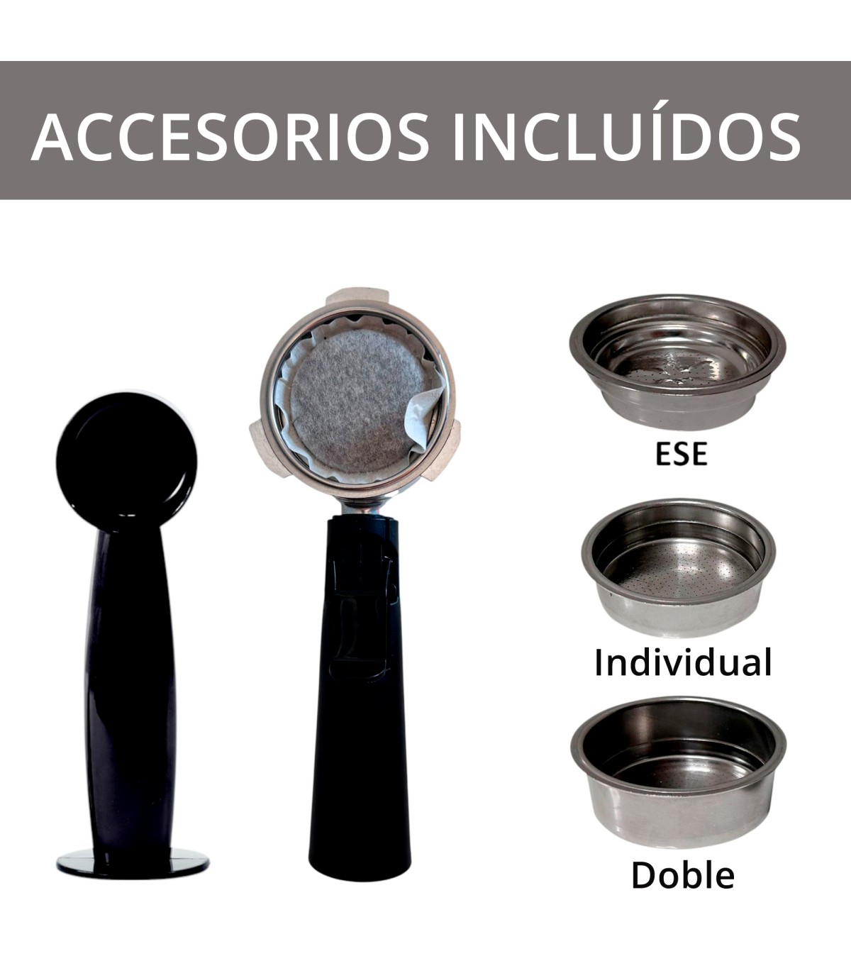 Incorpora un manómetro de temperatura de FÁCIL USO, podrá perparar deliciosos cafés con la mejor textura, aroma, presión y temperatura… simplemente controlando el manómetro y preparando el café en su perfecto tiempo. Sus 1050 W le permitiorán preprarar capucchinos espumosos con su vapororizador telescópico.